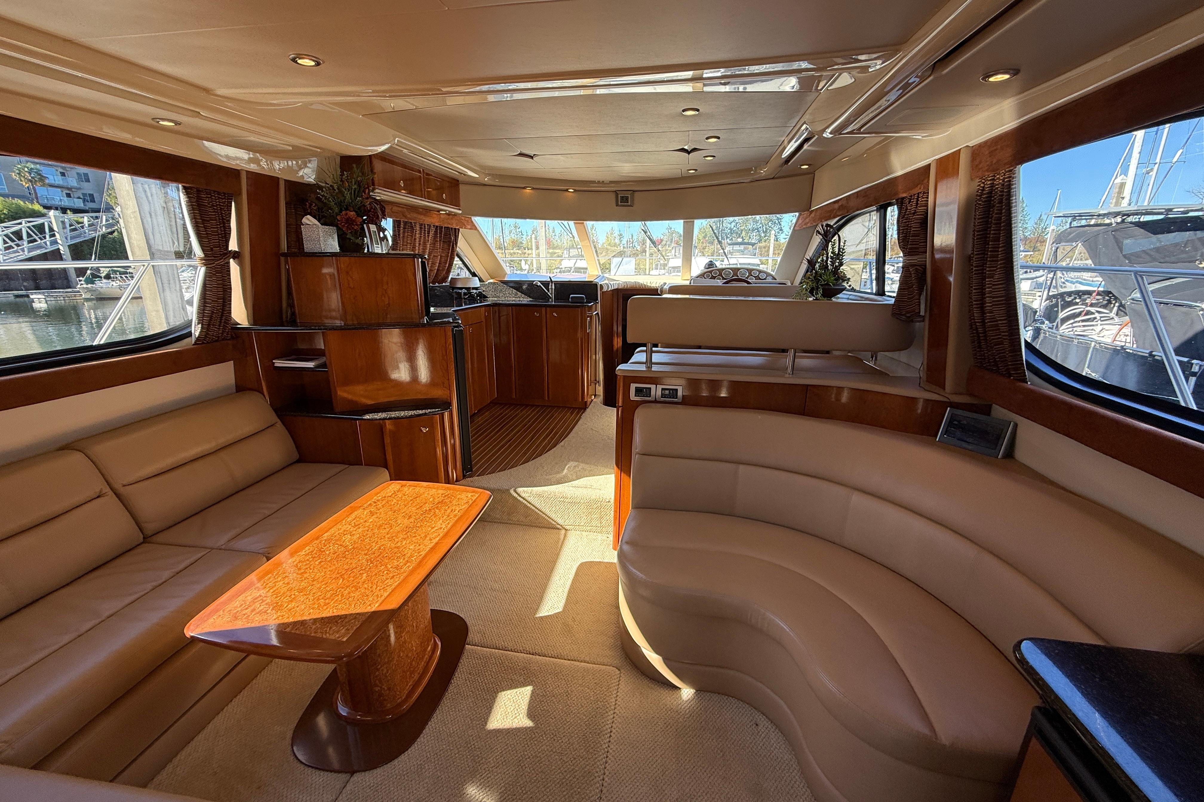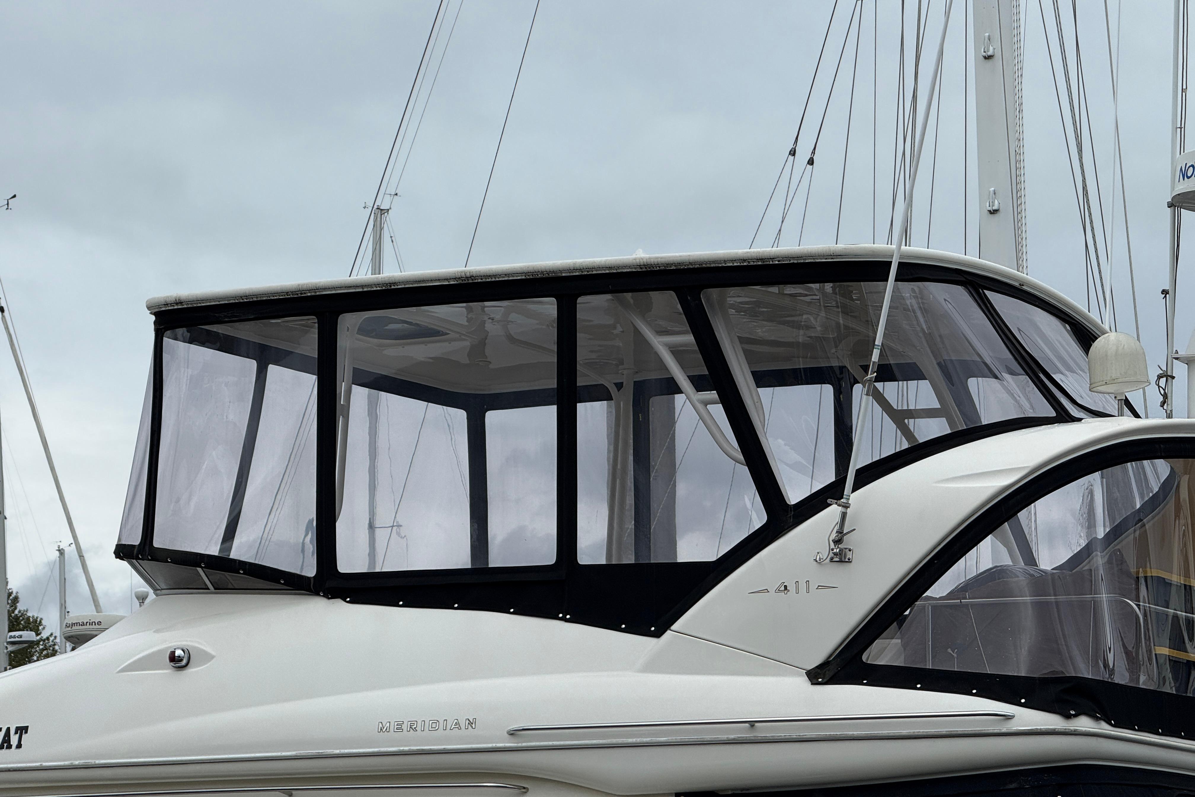 Whether you receive extra guests or weather conditions take an unexpected turn, flexibility is the name of the game for a cruising boater. To meet those changing needs on the water, Meridian designed its 411 Sedan to provide unsurpassed living spaces for up to six people while retaining the character of a true sedan bridge. The 411's generous master and guest staterooms each boast innerspring pillowtop mattresses and impressive storage, her dinette converts to a comfortable double bed and her expansive salon features living-room-style seating for all aboard. Yet with her molded-in steps and wide side decks, a couple can easily manage this yacht when the guests have gone home. Spacious Hardtop with full enclosure. And that's what flexibility is all about.