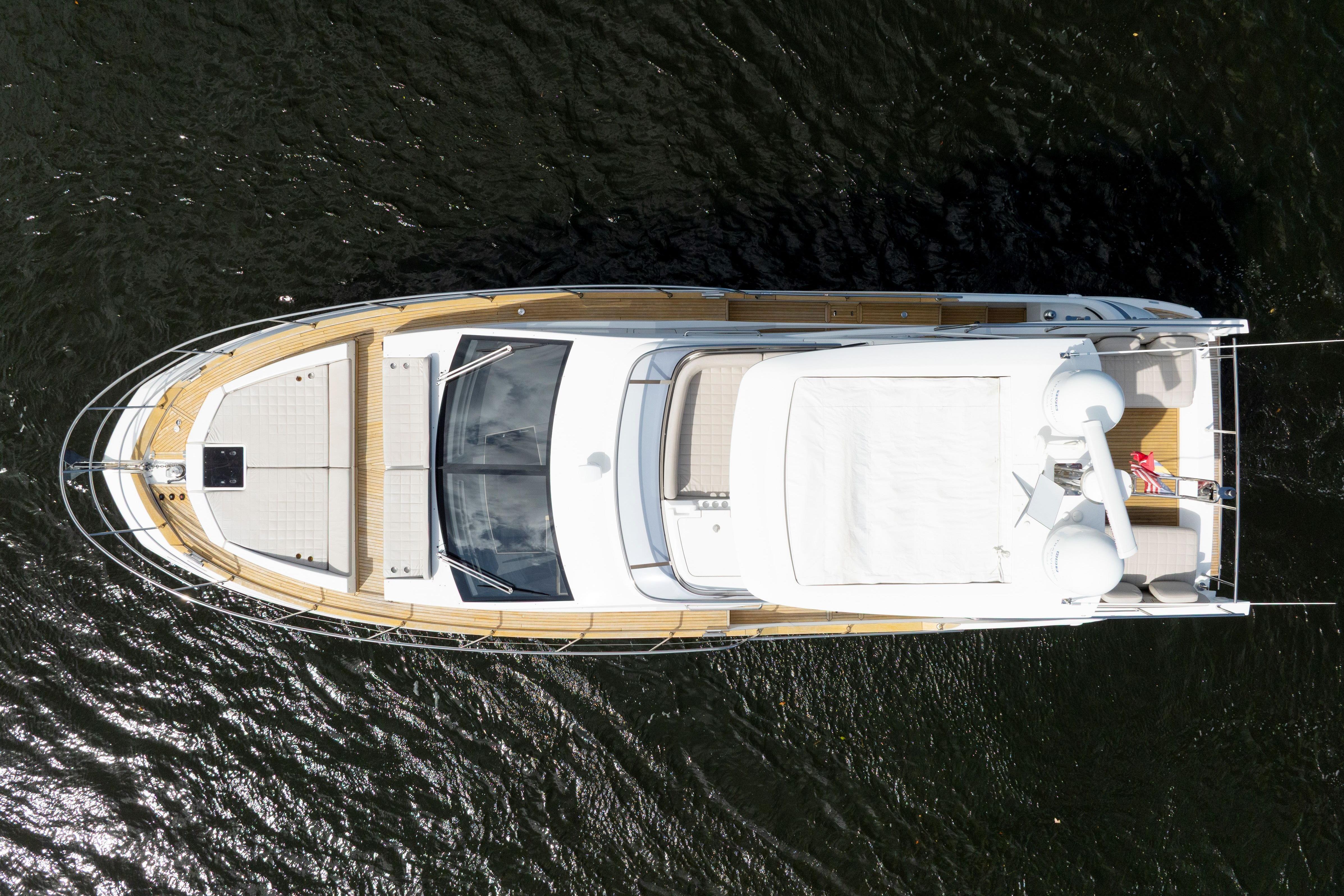 The 2018 Azimut 50 Flybridge is a luxury motor yacht known for its spacious and elegant Italian design, and a large flybridge for its class. It offers a combination of comfort, performance, and advanced features for cruising and entertaining, including an exceptionally large flybridge for its size class, with a hardtop that includes a retractable sunroof. On the flybridge, it has a fully equipped helm station with dual Raymarine screens, a wet bar with a refrigerator and electric BBQ, a lounge area, and sun pads.