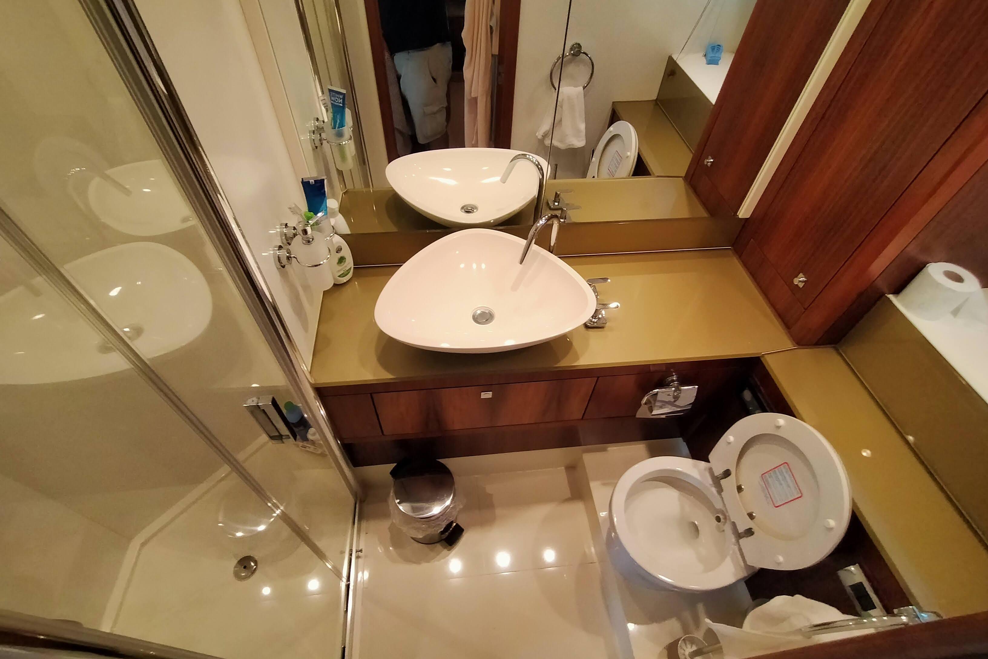 Stern and Bow Thruster, Battery Charger, Inverter, Fire Alarm, Boiler, Water Pump (Autoclave), Split Air Conditioning (every cabin + crew cabin), TV System, Stereo System, DVD Player, Teak Cockpit, Teak Platform, Up/Down Stern Platform, Cockpit Cover, Bow Searchlight with remote control, Venetian blind window cover kit, External protection covers (stern and bow sundecks).