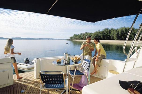 The L-shape dinette opposite could comfortably accommodate five adults. An L-shaped lounge and ottoman aft of the galley faced an entertainment unit with flat-screen TV, sound system, glassware drawers and a bar fridge.