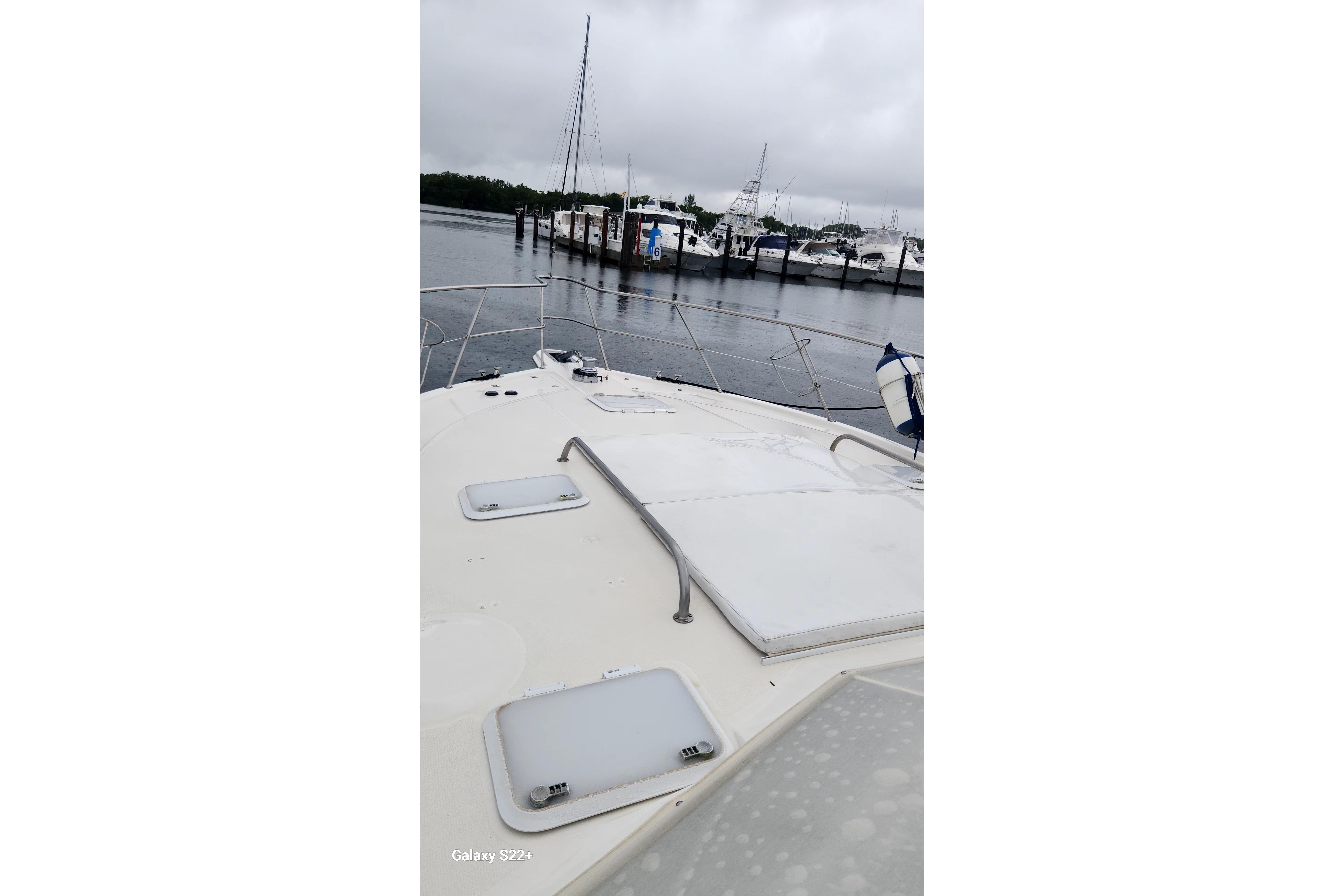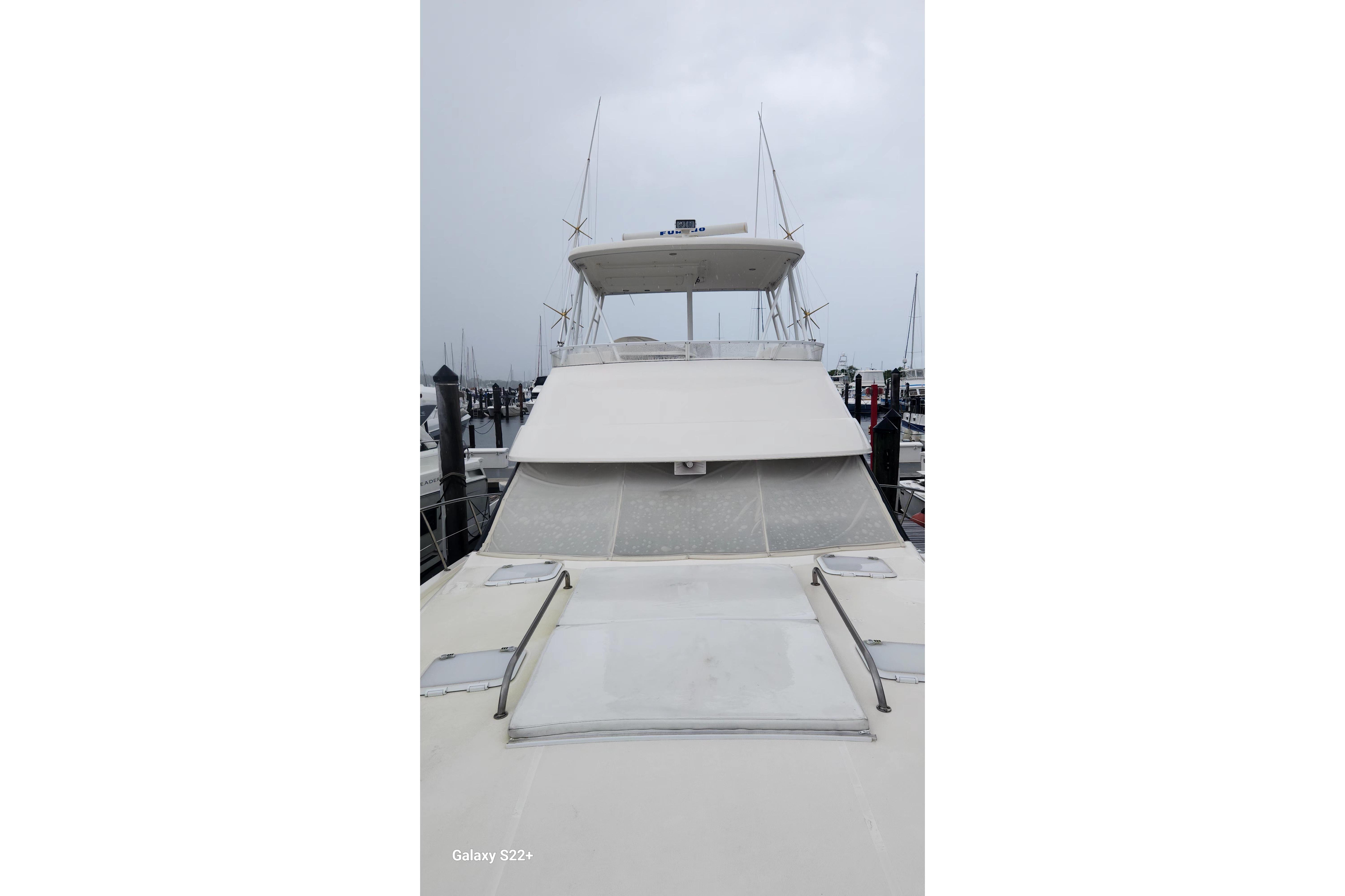 13 kw Onan EQD electronically controlled auxiliary generator; three-zone air conditioning/reverse-cycle heat; trim tabs; VacuFlush heads; hot and cold hand-held cockpit shower; washdown system; tackle locker; cockpit cool box; flybridge wet bar; refrigerator; microwave/convection oven; Granicoat countertops; two-burner electric cooktop; drawer-style dishwasher. Rupp outriggers; Pompanette Platinum helm seats.