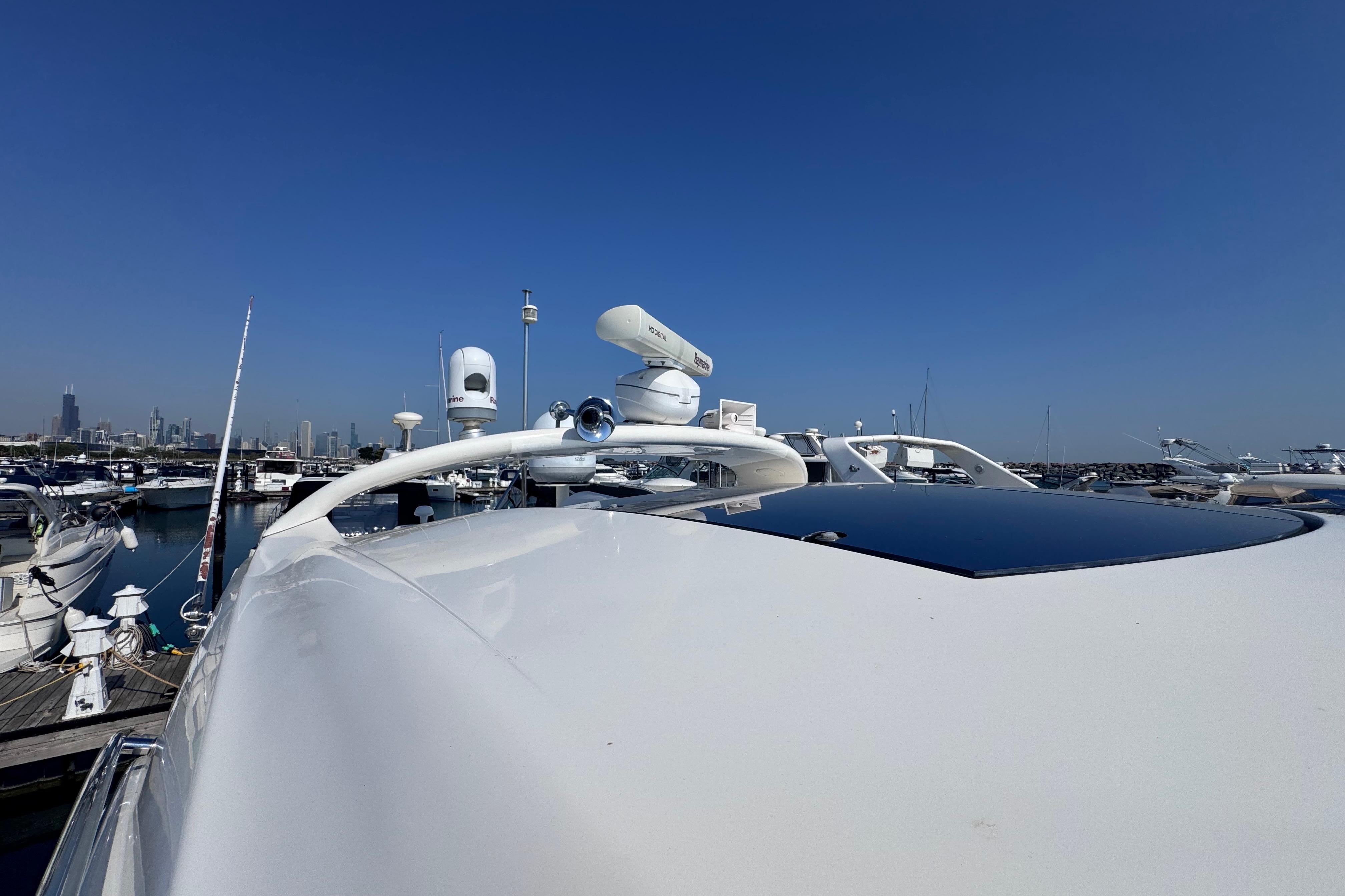 - SUPERSTRUCTURE: molded fiberglass with core Hard top and sunroof Swim Platform hydraulic with ladder Aft garage storage Deck non-skid HD Bow rail Handrails Hardware polished Stainless Pulpit Windlass Quick Windlass control helm and bow