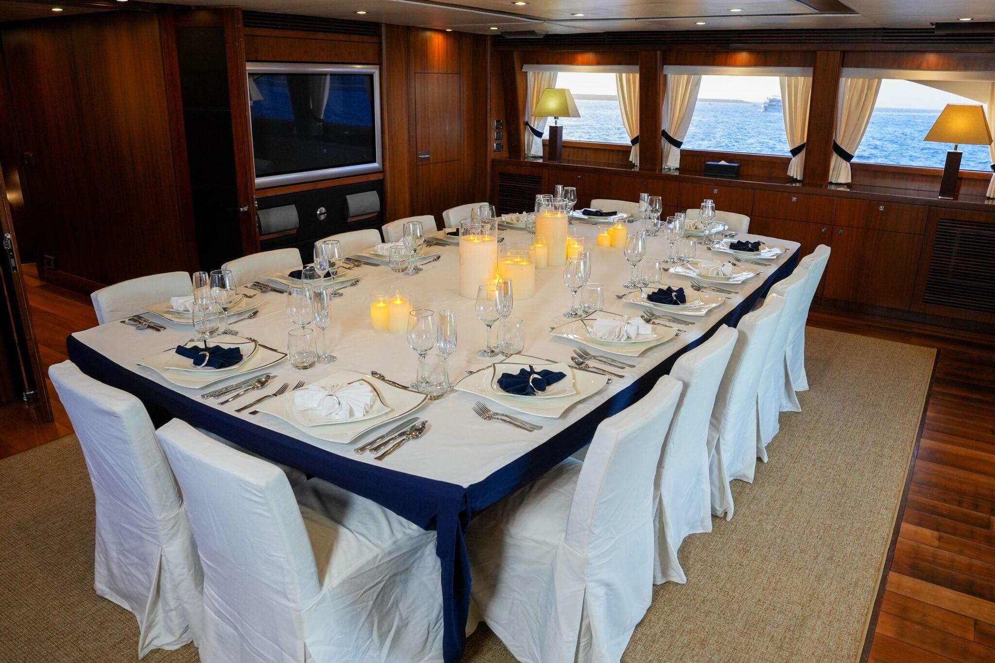 - Private dining area on the upper deck and an enlarged main salon for social gatherings