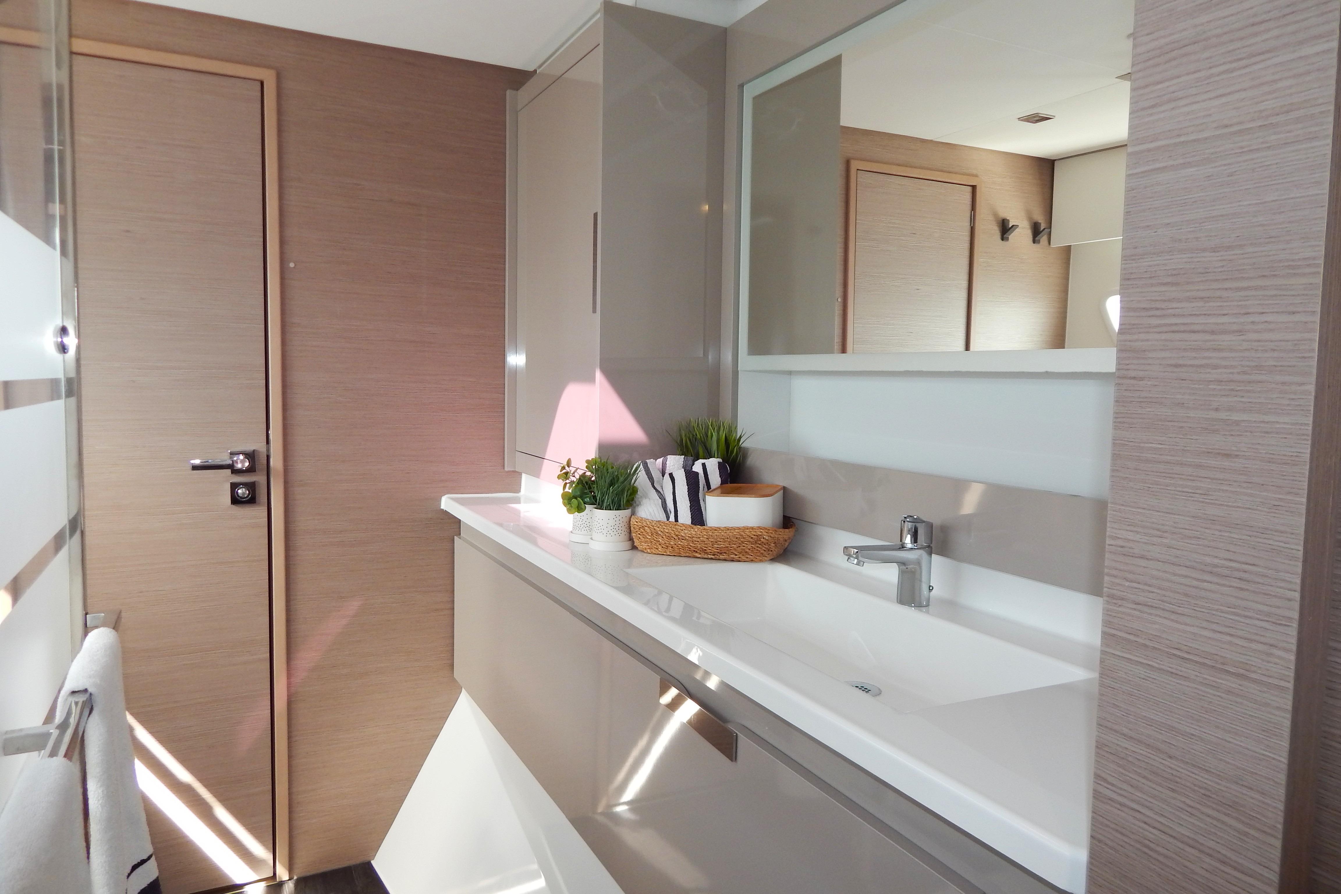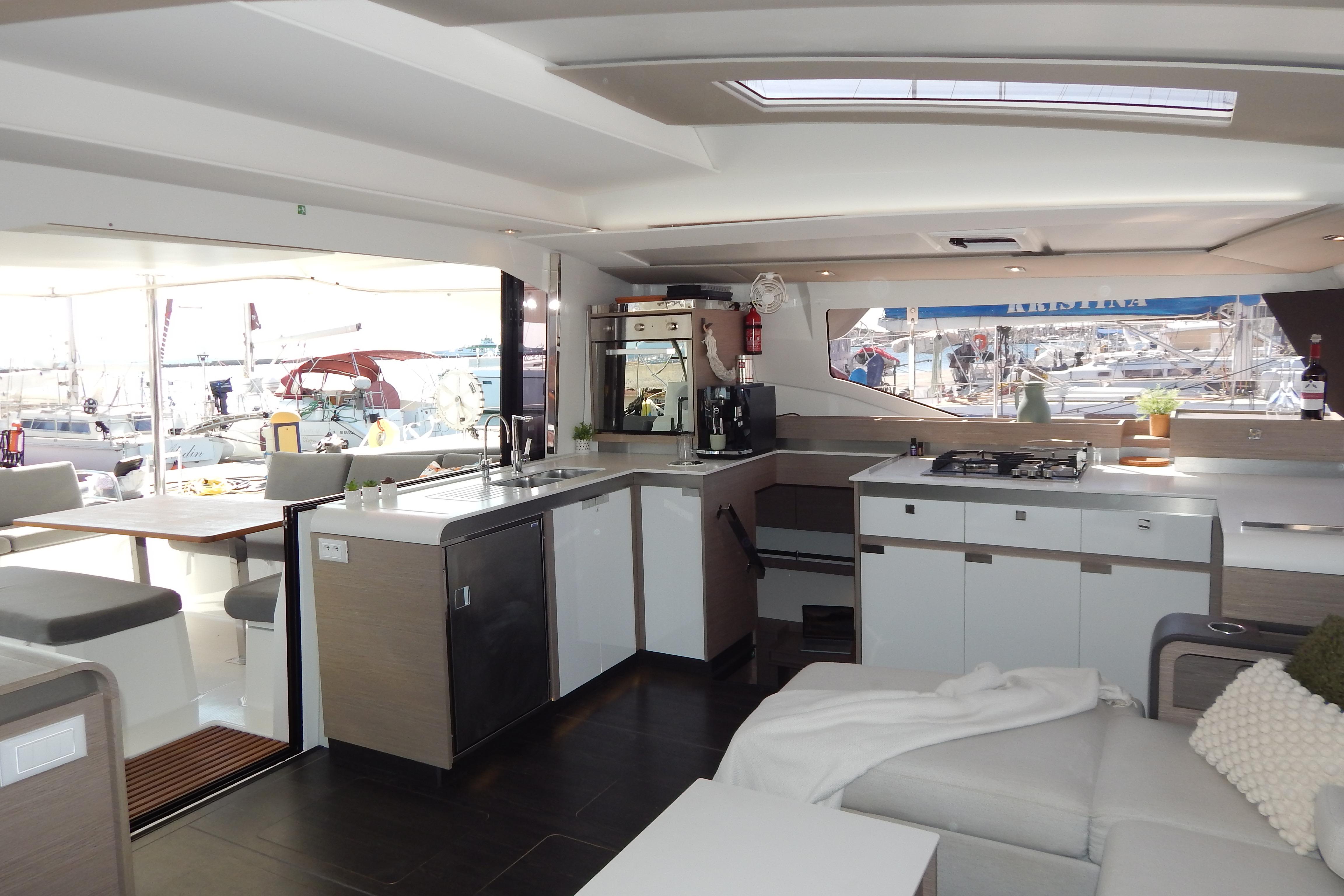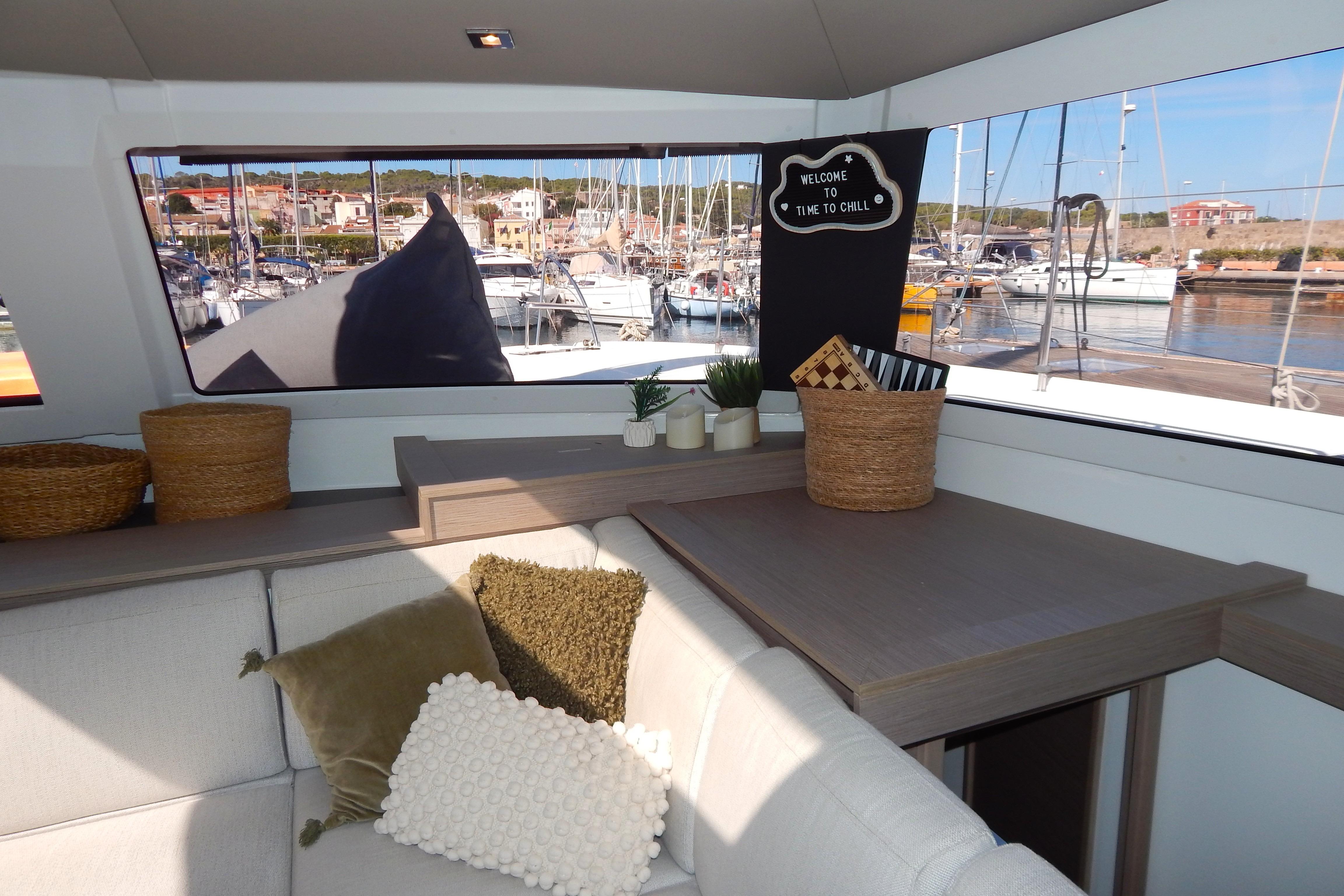 Commissioned as a 3-cabin, 3-head Owner’s Version with the Comfort Package and over €250,000 in factory upgrades, TIME TO CHILL delivers elevated comfort and capability in every detail. The Maestro layout dedicates the entire port hull to a refined owner’s suite with private head and walk-in shower, while the starboard hull offers two spacious guest cabins, each with ensuite facilities. Her luminous saloon, well-equipped galley, and expansive cockpit flow seamlessly for effortless indoor–outdoor living.