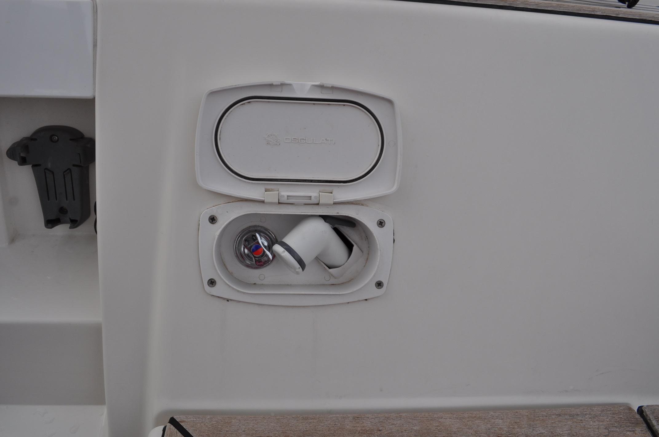 - Gas locker compartment, for 2 x 3 kg gas bottle, located in port cockpit coaming, drained to the sea (1 x 3kg is delivered with the yacht)