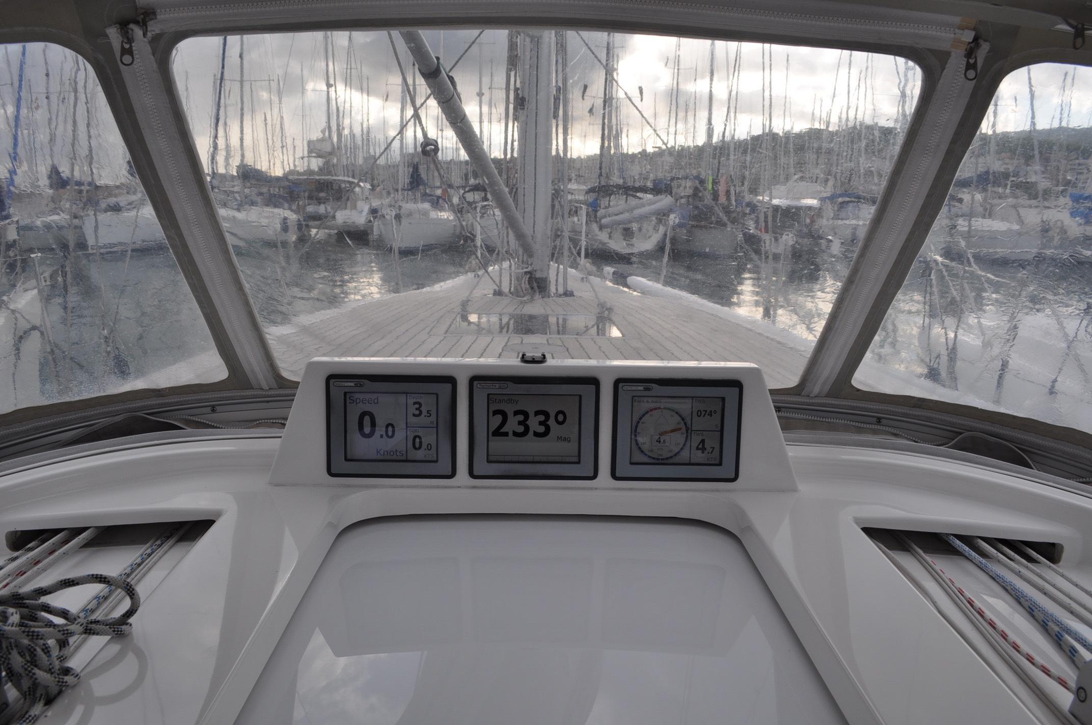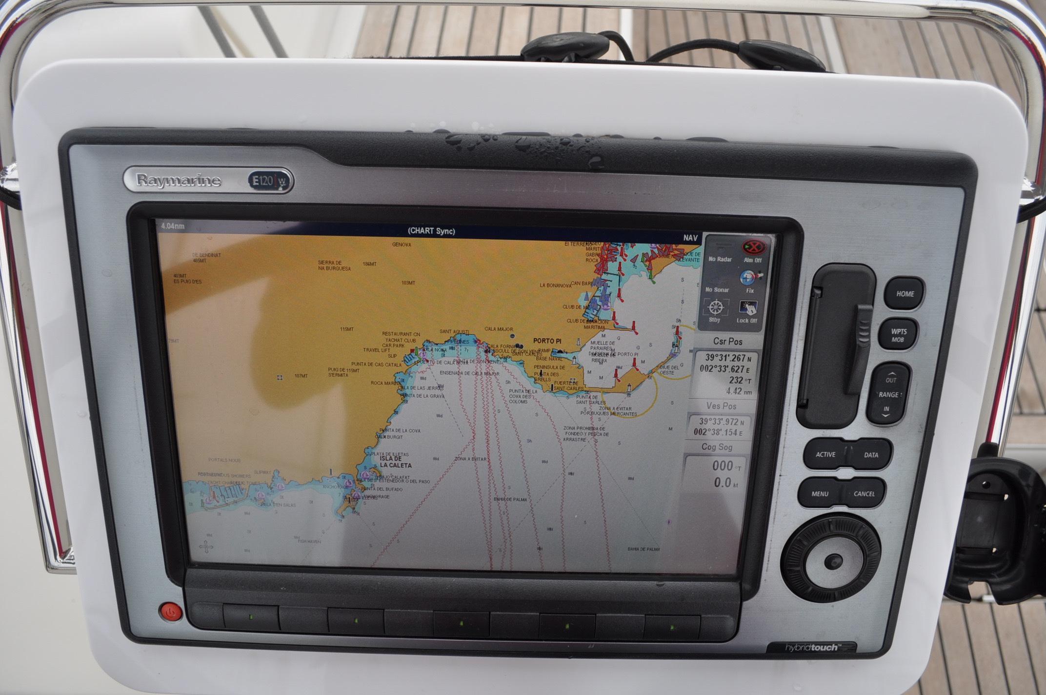 - To starboard: Standard sliding navigation table (75 cm x 65 cm) with storage for navigational stationary and instruments.
