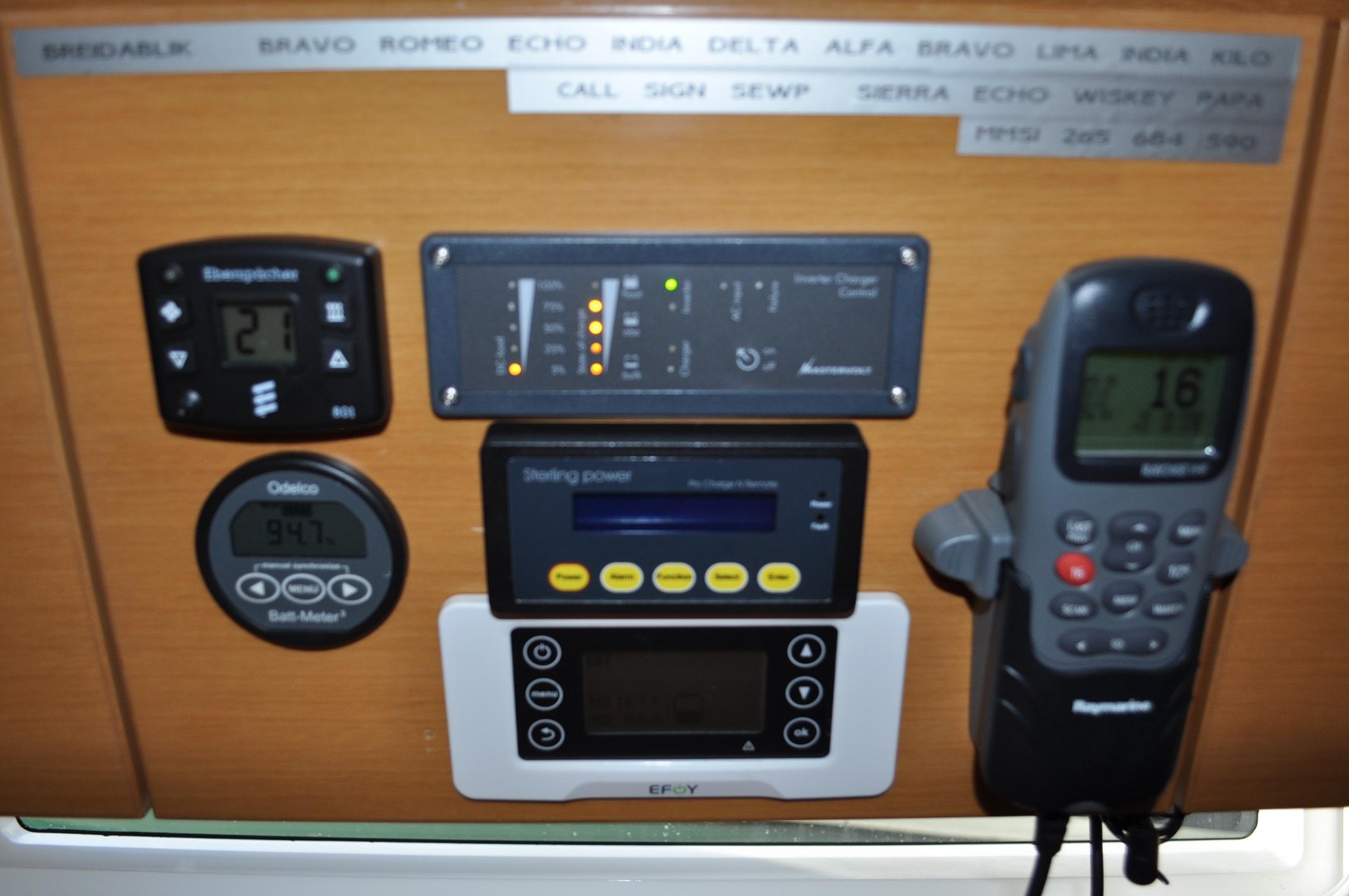 - Electrical switch board located above chart table on upper lockers
