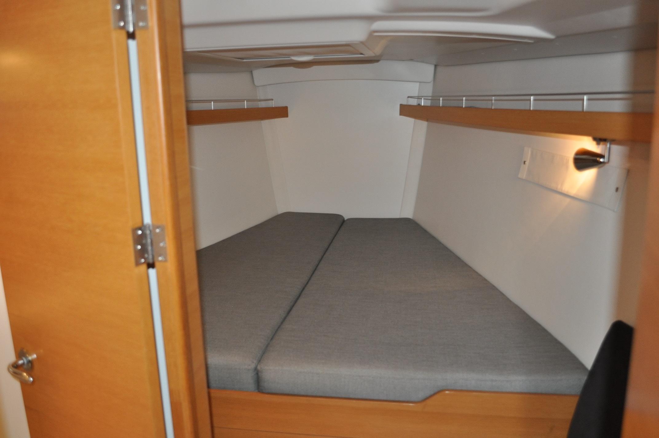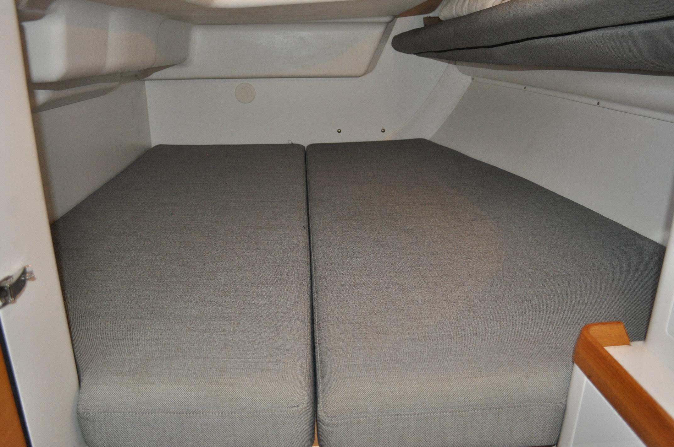 - Large double berth. Marine plywood mattress supports. Mattresses in 120 mm comfort foam. Max size 205 x 190 cm