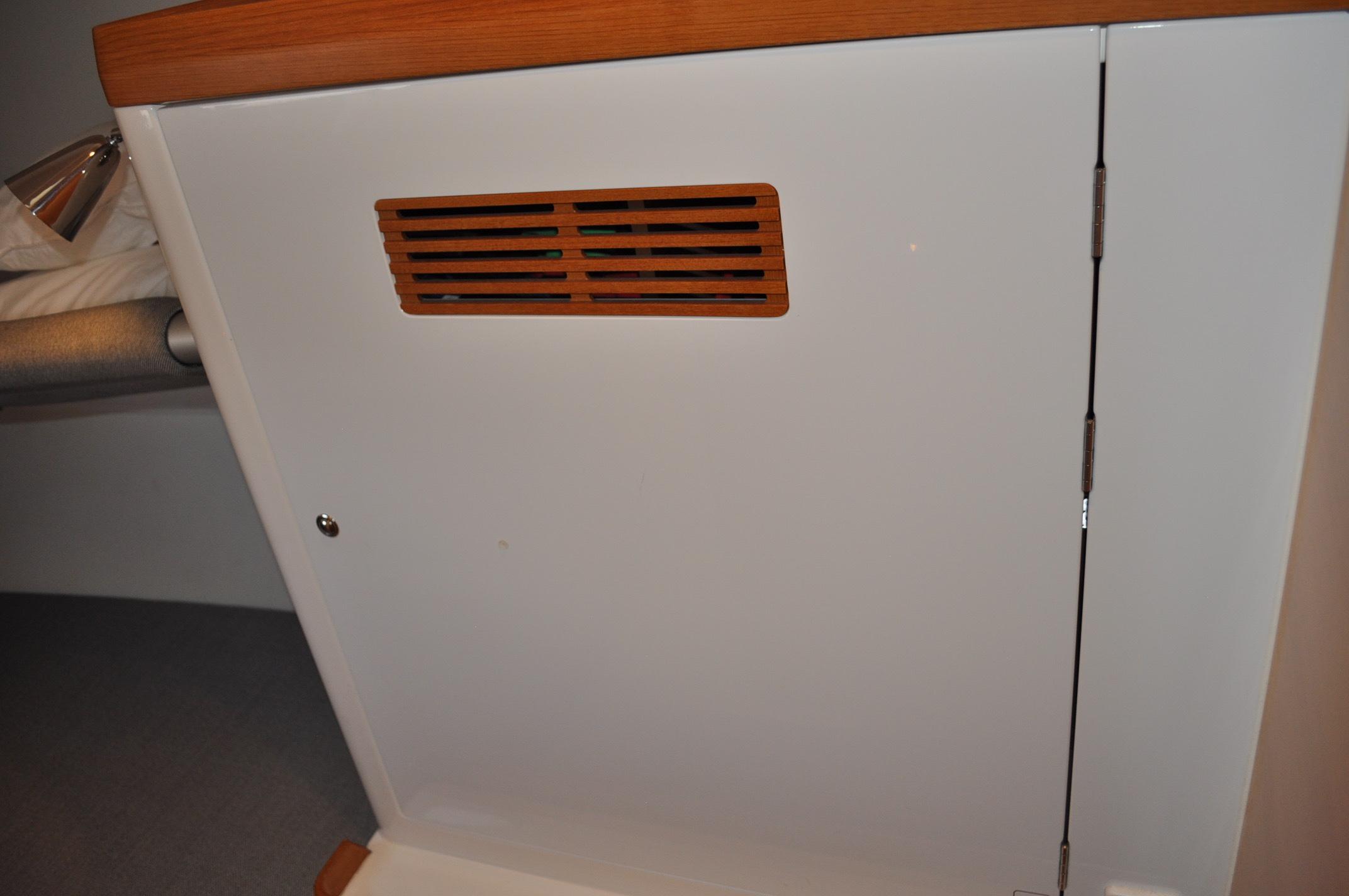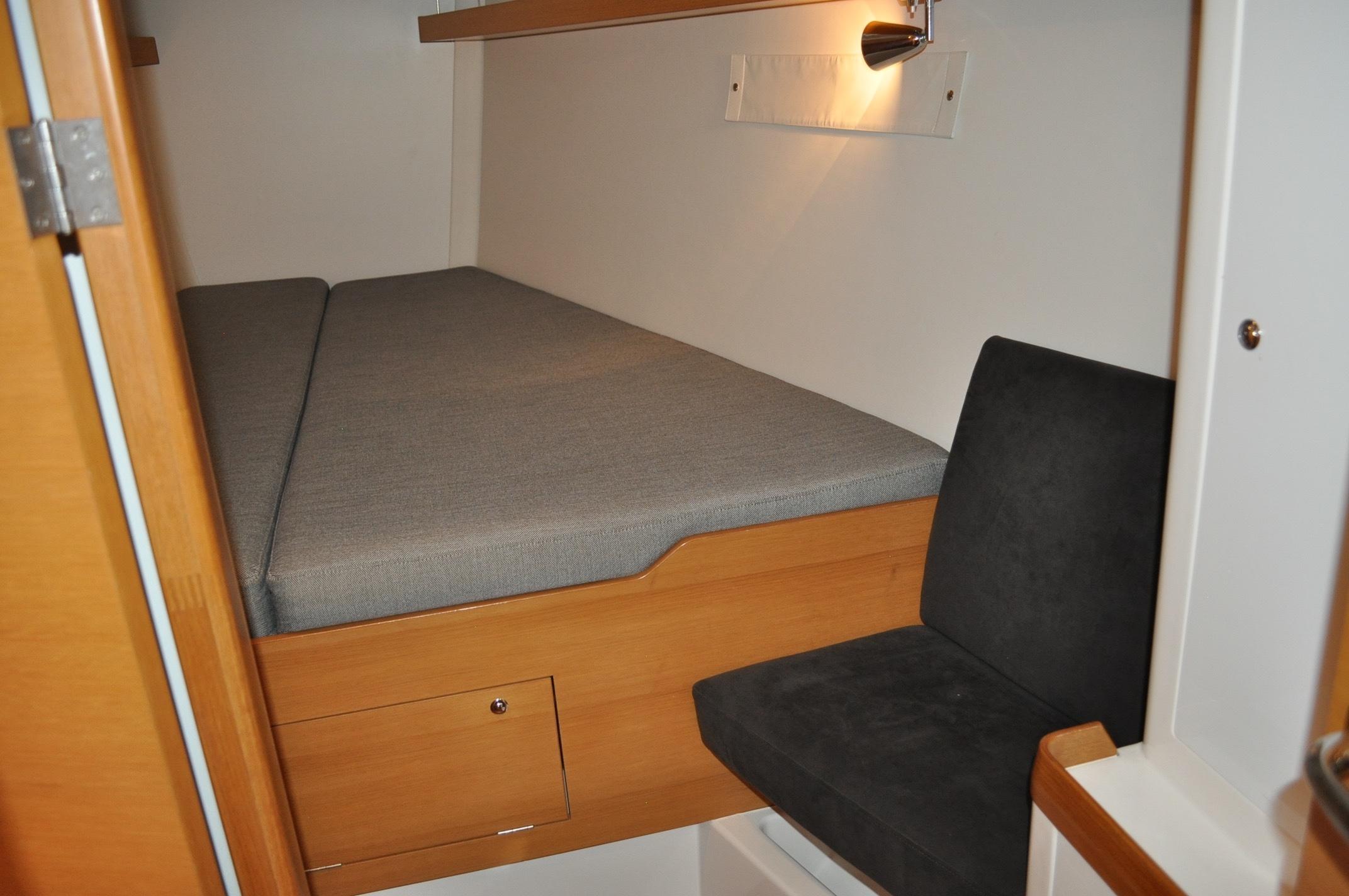 - Storage space under owners berth for bedding