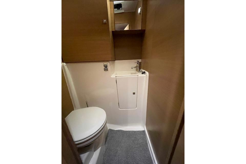 Very balanced hull shape, with powerful aft sections, low wetted surface area and a very effective set of appendages (keel & rudder). The high ballast ratio and increased form stability of the hull enables the boat to support a powerful sailplan without sacrificing cruising comfort and safety. The sail plan has been designed to guarantee maximum performance with minimum effort. The fixed bowsprit, the self tacking jib and the boom inclined forward are all examples of a sail plan that is derived from solo sailor open 60, where ease of handling in race mode are mandatory.