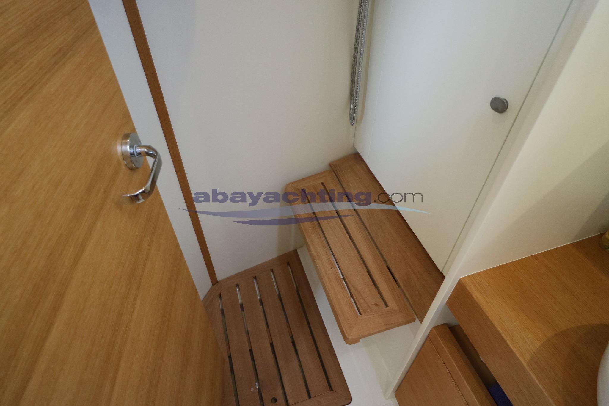 Ancora (Delta 20 kg. + 50 metri di catena), Autoclave, 8 Batterie (8 X 95 ah AGM), Camminamenti laterali in teak (Teak comento nero), Caricabatterie, Doccia esterna, Doppia timoneria, Elica di prua - bow thruster (Retrattile con comandi su consolle), Gruette per motore fuoribordo, 8 Parabordi, Passerella (Carbonio ripiegabile), Piattaforma (Aprile ed elettrica), Pompa di sentina automatica, Pompa di sentina elettrica, Ponte in teak, Porta ingresso, Pozzetto Teak (Teak comento nero), Presa 220V banchina, Rollbar, Salpa Ancore Elettrico (Elettrico), Sartiame in tondino, Scaletta da bagno, Supporto motore fuoribordo, Tavolo pozzetto (Teak con gambe inox), Tavolo Salone Abbattibile (Tavolo ripiegabile), Tuga in teak (Teak comento nero), 4 Winch (Elettrici. 2x60 + 2x50 Harken), Windex