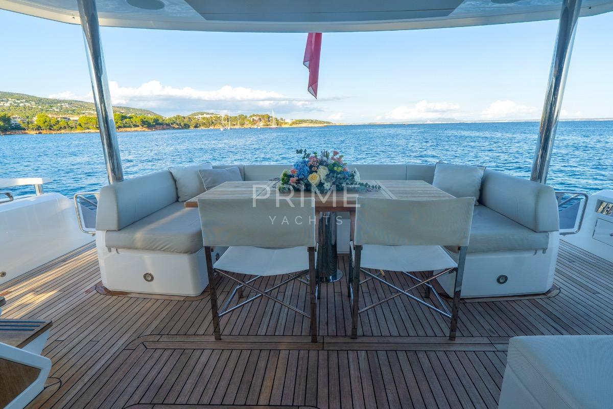 - Flybridge: Featuring a lavish bar, grill, and seating area perfect for al fresco dining. Accommodates up to 10 guests and offers two inviting sunbathing areas.