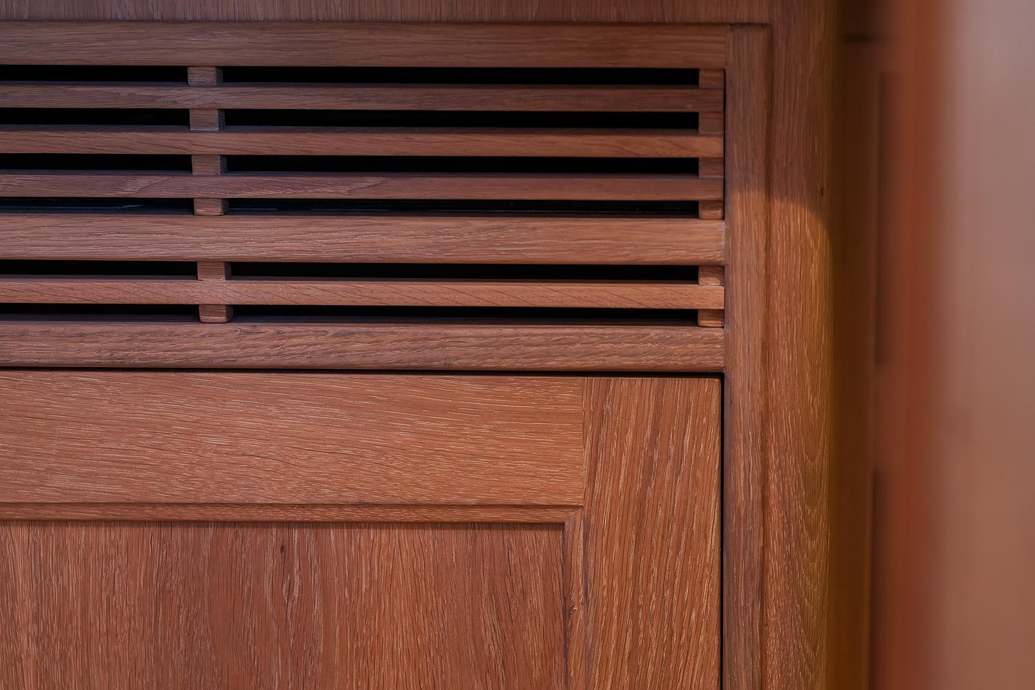The interior is beautifully handcrafted in light oak and high-quality materials, creating a warm and inviting atmosphere.