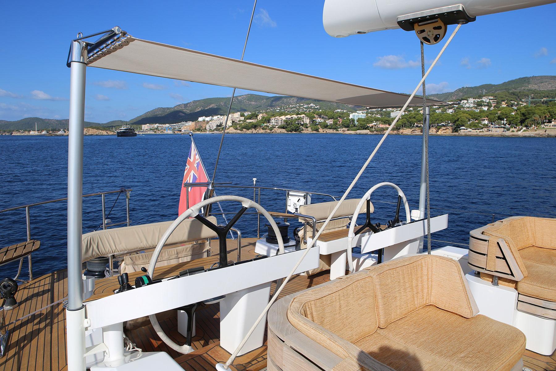 - Integrated in-boom furling with mainsail traveler and foresails furled on two hydraulic furlers providing a two-person crew the ability to operate the yacht effortlessly and securely.