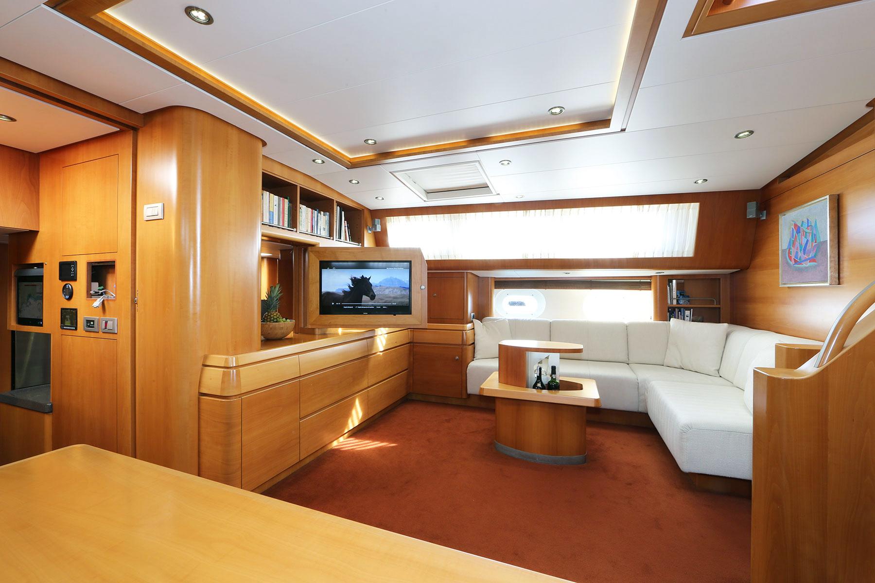 A 3m taller carbon mast with carbon boom and hydraulic in-boom furling was chosen to further improve performance. Bow- and stern thrusters are in place to guarantee effortless maneuvering.