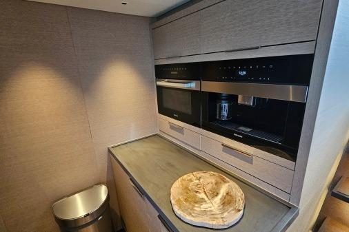The spacious owner’s suite features a private deck entrance, while the galley-down configuration maximizes living space.