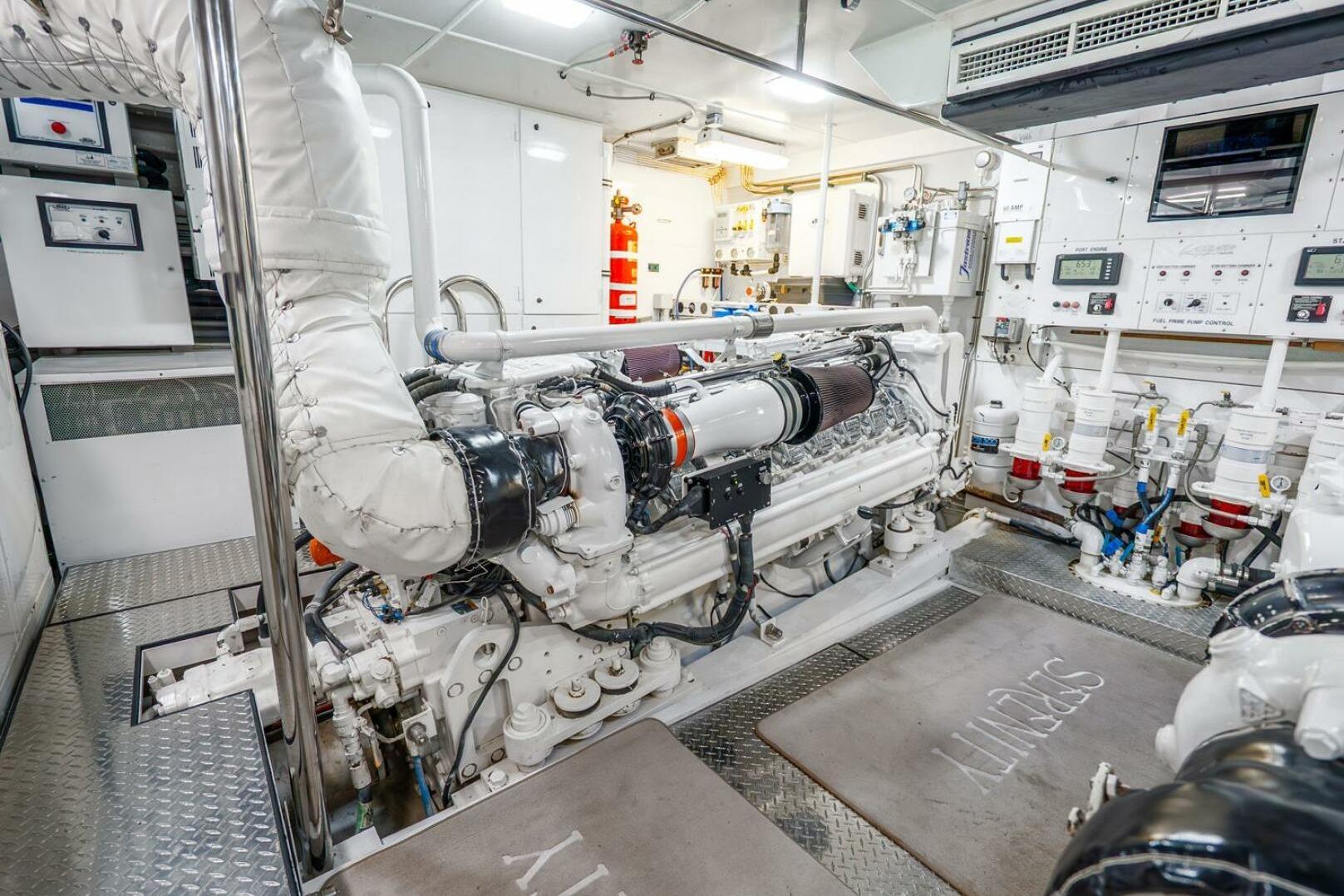 Serenity offers an endless amount of entertaining options including hydraulic swim platform, Jacuzzi, Control 4, 2025 iPad control systems, forward facing underwater 2025 camera and so much more. The ZERO speed stabilizers will keep you in perfect comfort. The time you spend on her will not only be never ending enjoyment but offer you a break from the everyday. New soft goods, new headliners throughout, complete AV upgrade, Spot Zero double pass system, Paint (December 2016) on superstructure and hull and engine room, new air handlers throughout to accommodate up to 12 guests. Serenity, your great escape, awaits you.