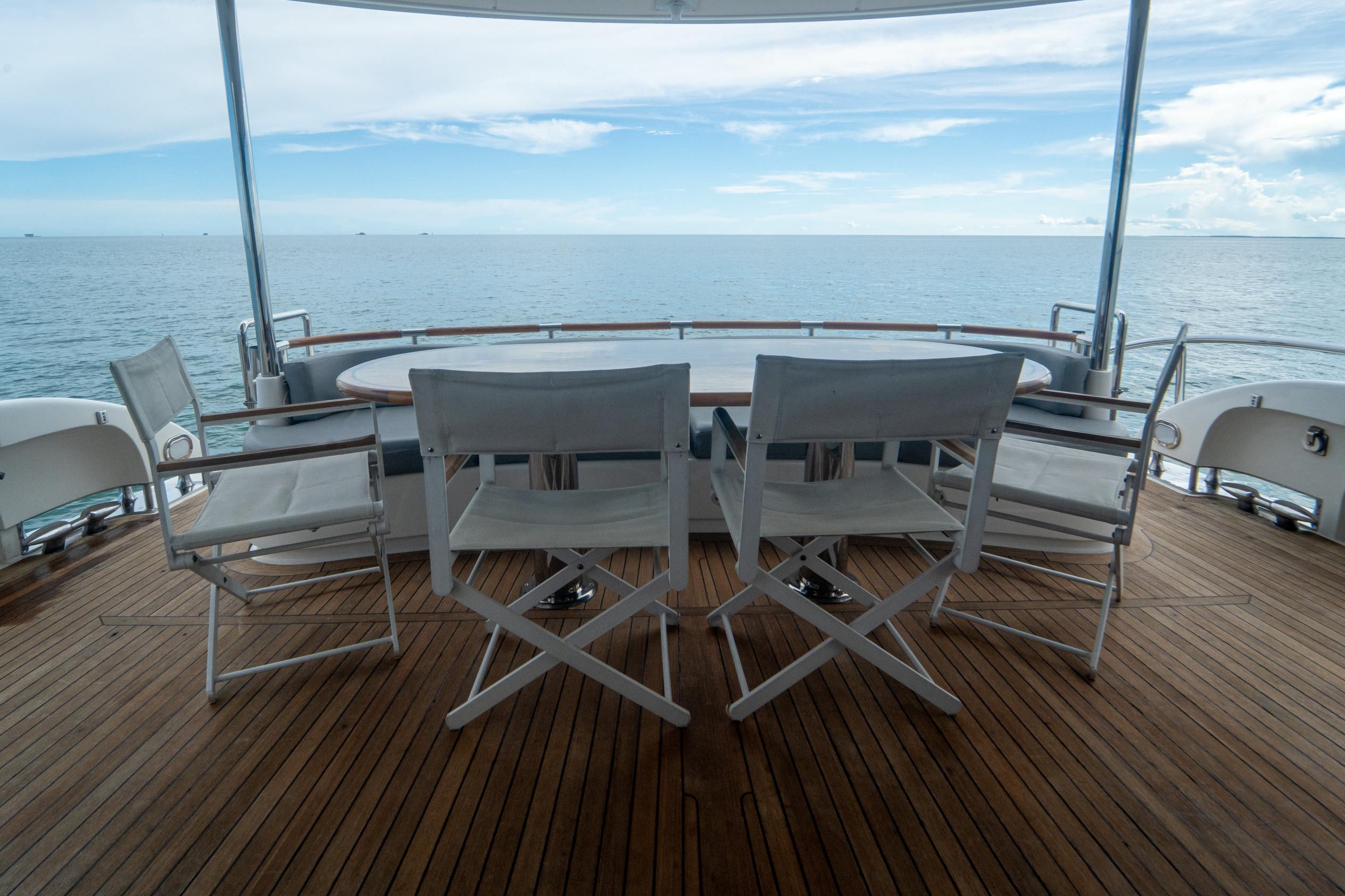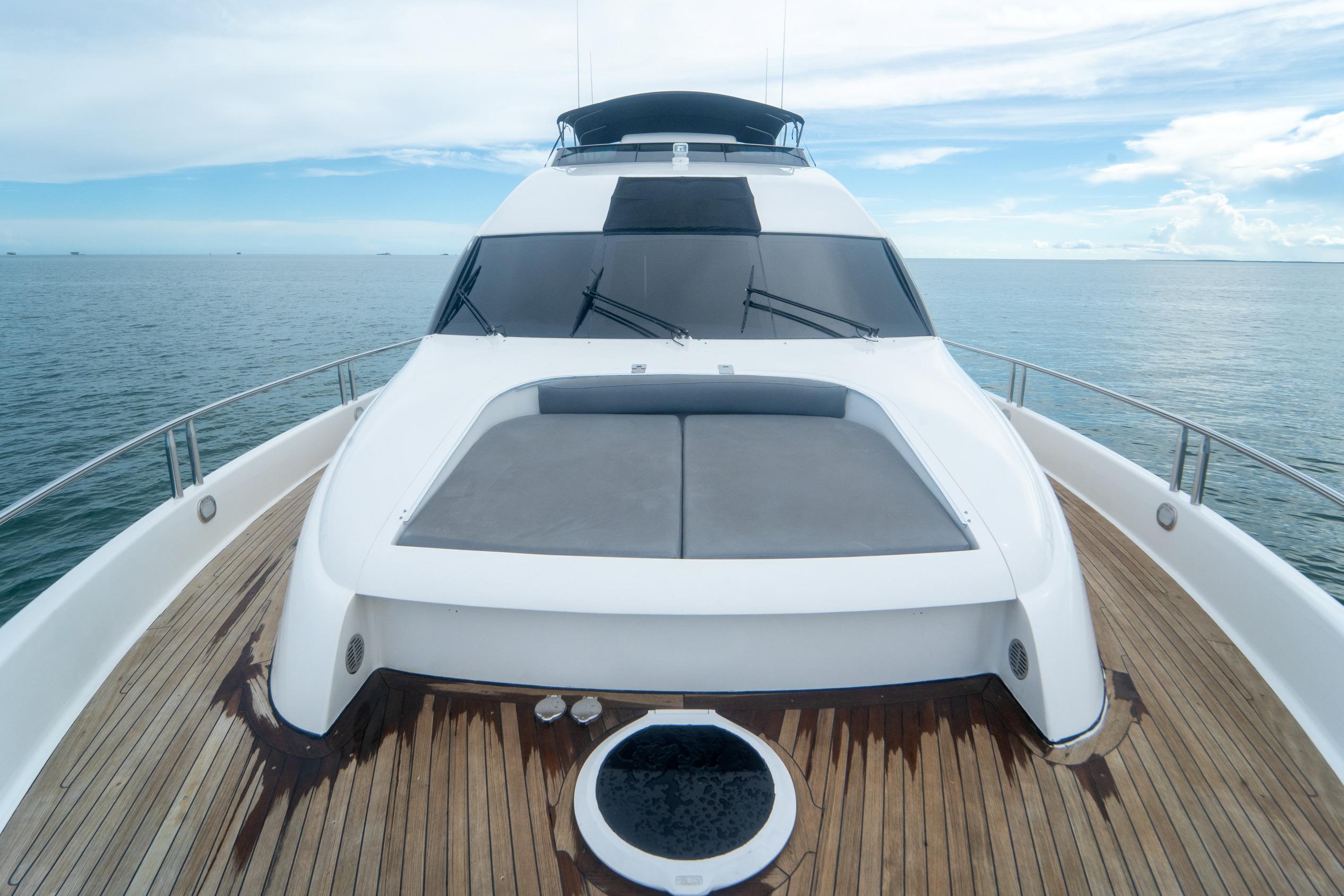 Her sleek fiberglass hull and superstructure contribute to a gross tonnage of 109 GT and a beam of 6.13 meters (20 feet). With a maximum speed of 32 knots and a cruising speed of 24 knots, she is powered by twin Caterpillar C32 engines, each producing 1,650 horsepower. The yacht boasts a maximum cruising range of 415 nautical miles at 10 knots.