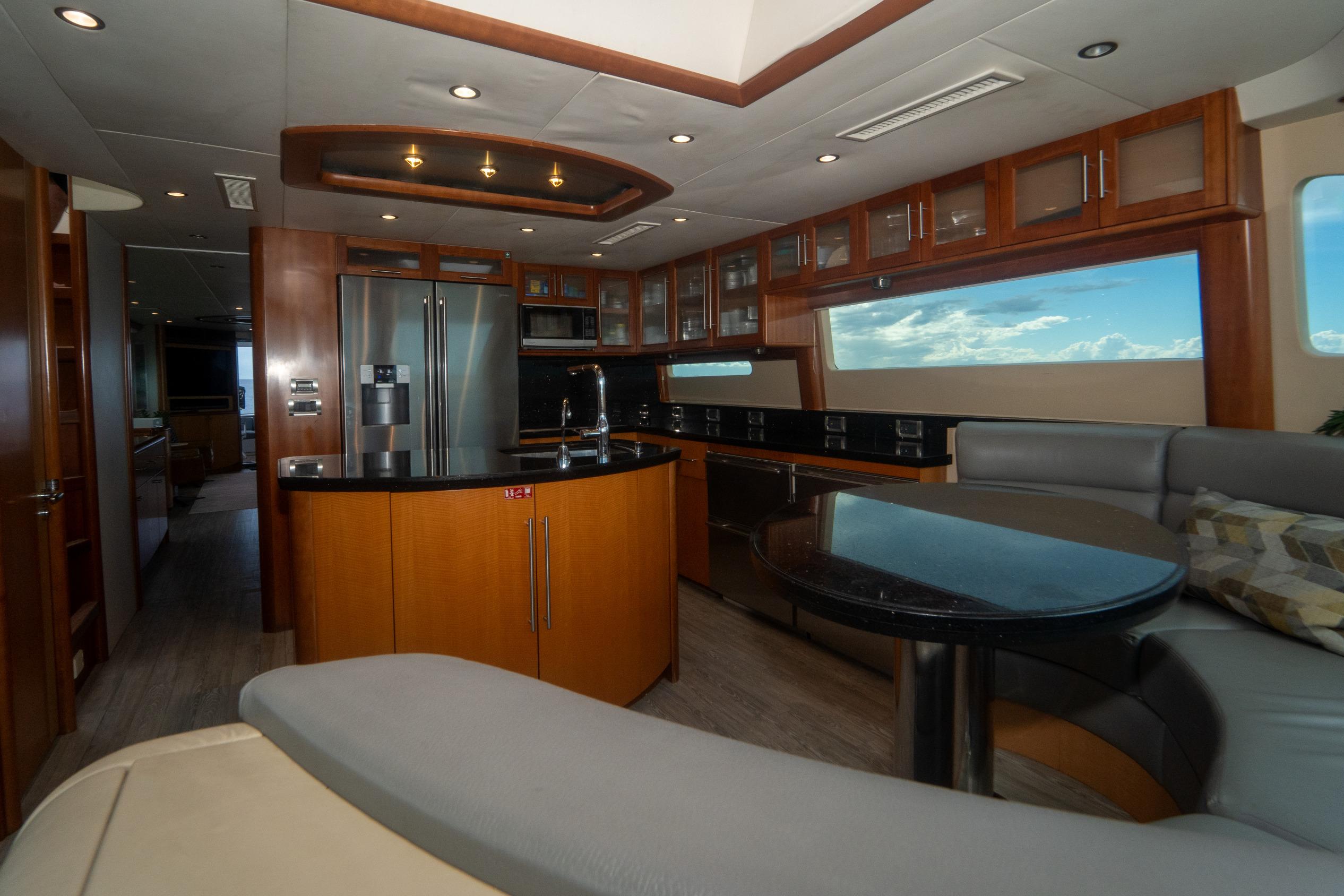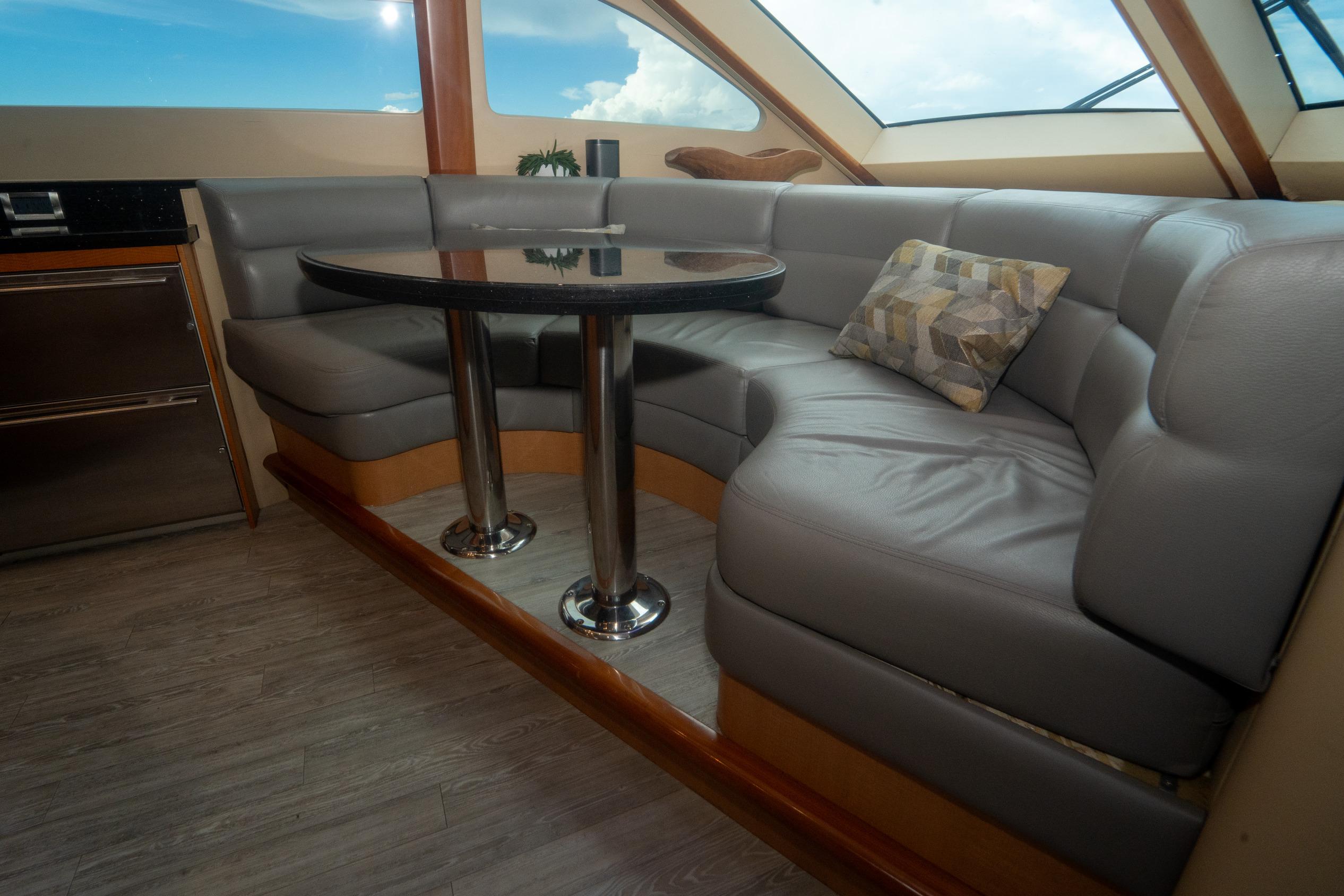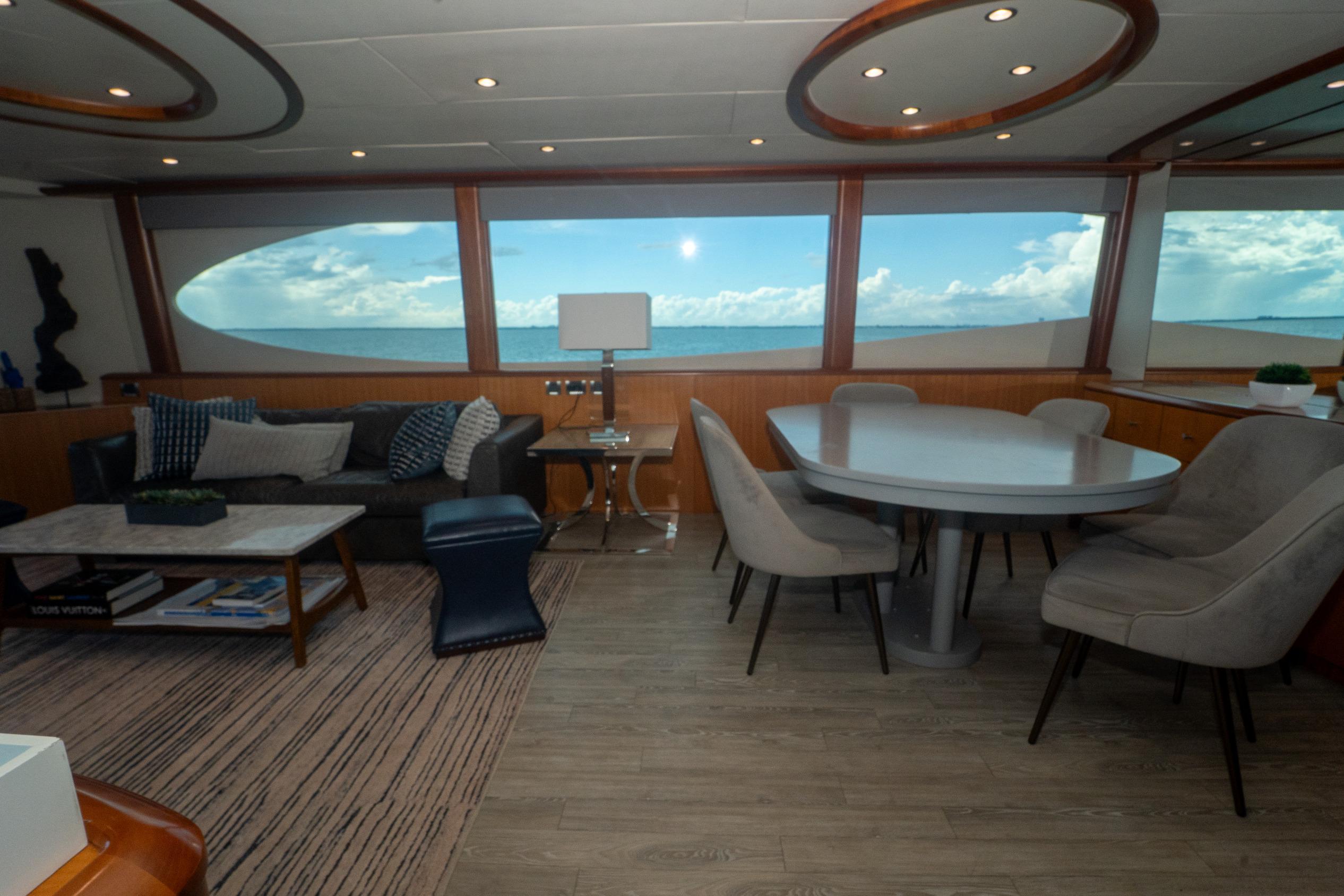 “Living the Dream” boasts a luxurious interior that combines elegance with functionality. The salon is spacious and well-appointed, providing a comfortable setting for relaxation and entertainment. The yacht is equipped with modern amenities, including updated Garmin electronics, a vast engine room, and options like twin Onan 27.5 kW generators