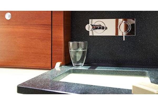 - Solid surface, CoreanTM black quartz with integrated double sink
