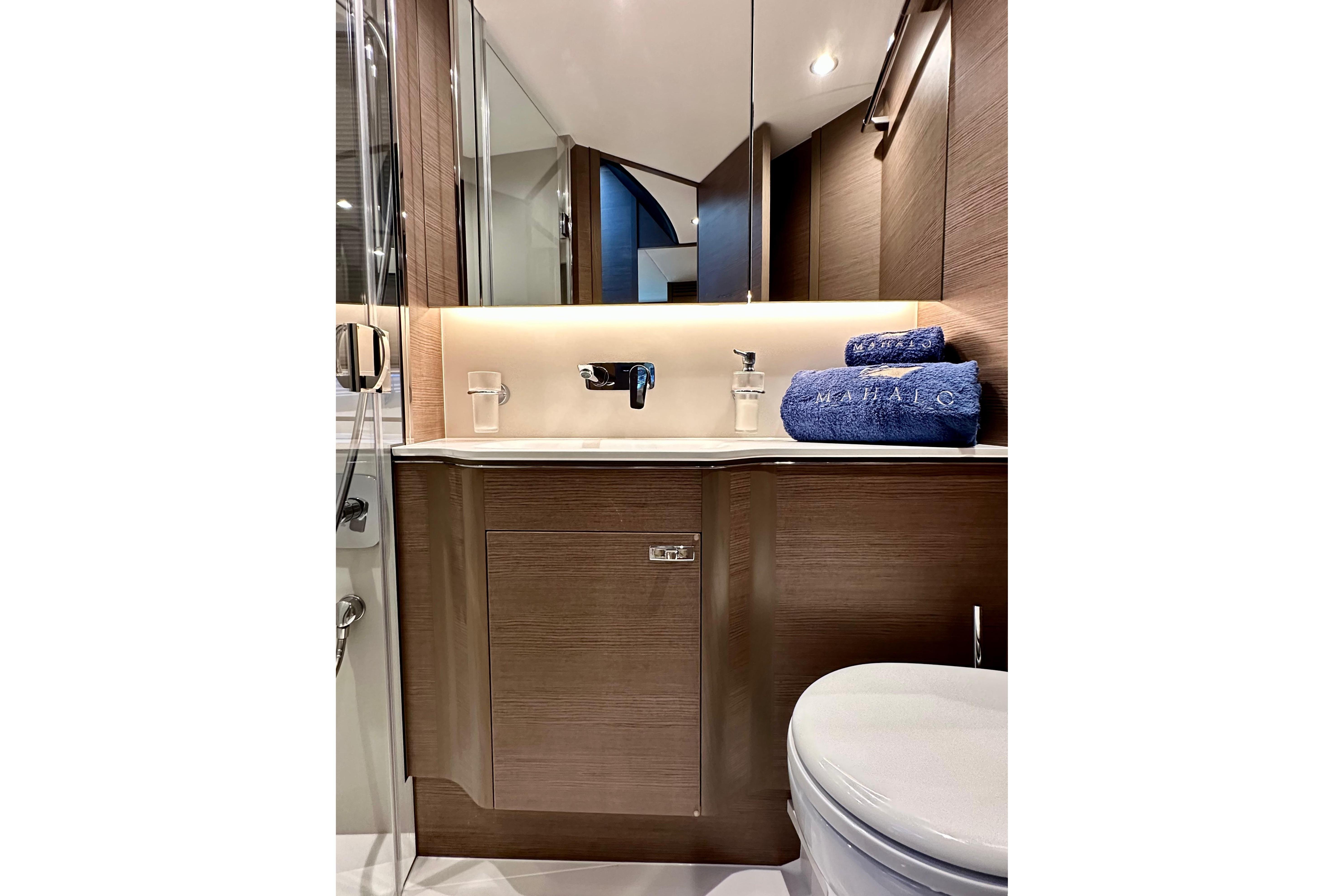 - All bathrooms feature electric freshwater toilets and 240v shaver points