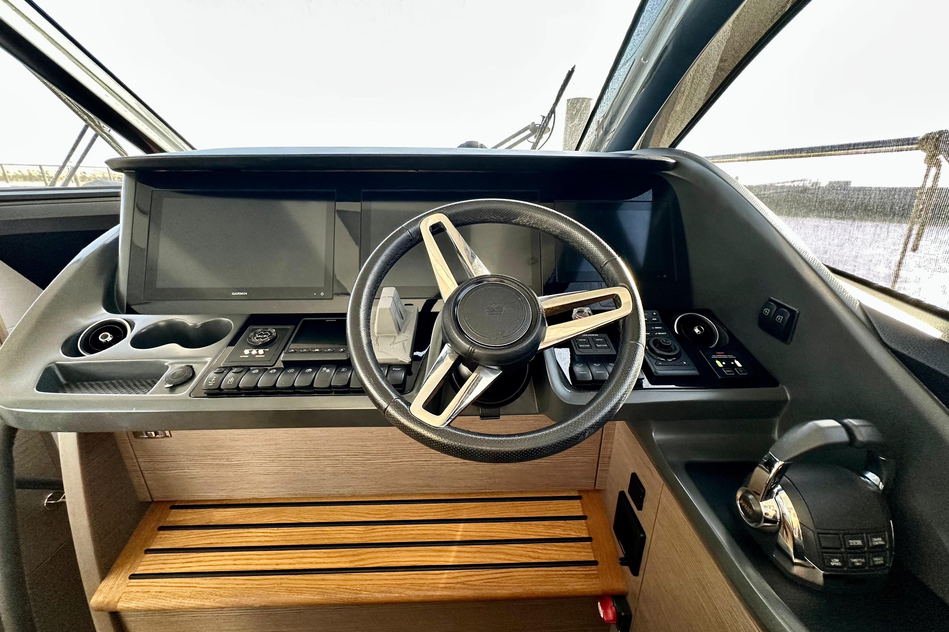 - Volvo joystick control (dual station when separate second station option is selected) with low-speed maneuvering in 'docking mode' and steering at any speed in 'driving mode'. Operates engines, steering and thruster(s) including stern thruster when fitted (includes uprating standard bow thruster to 210KgF variable speed);