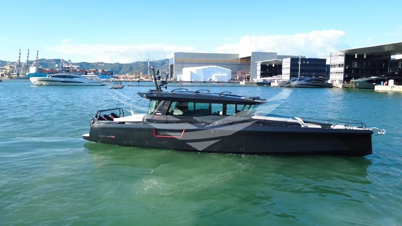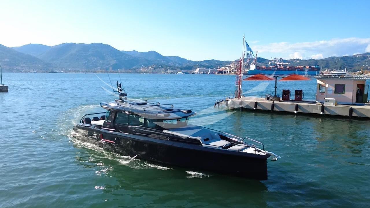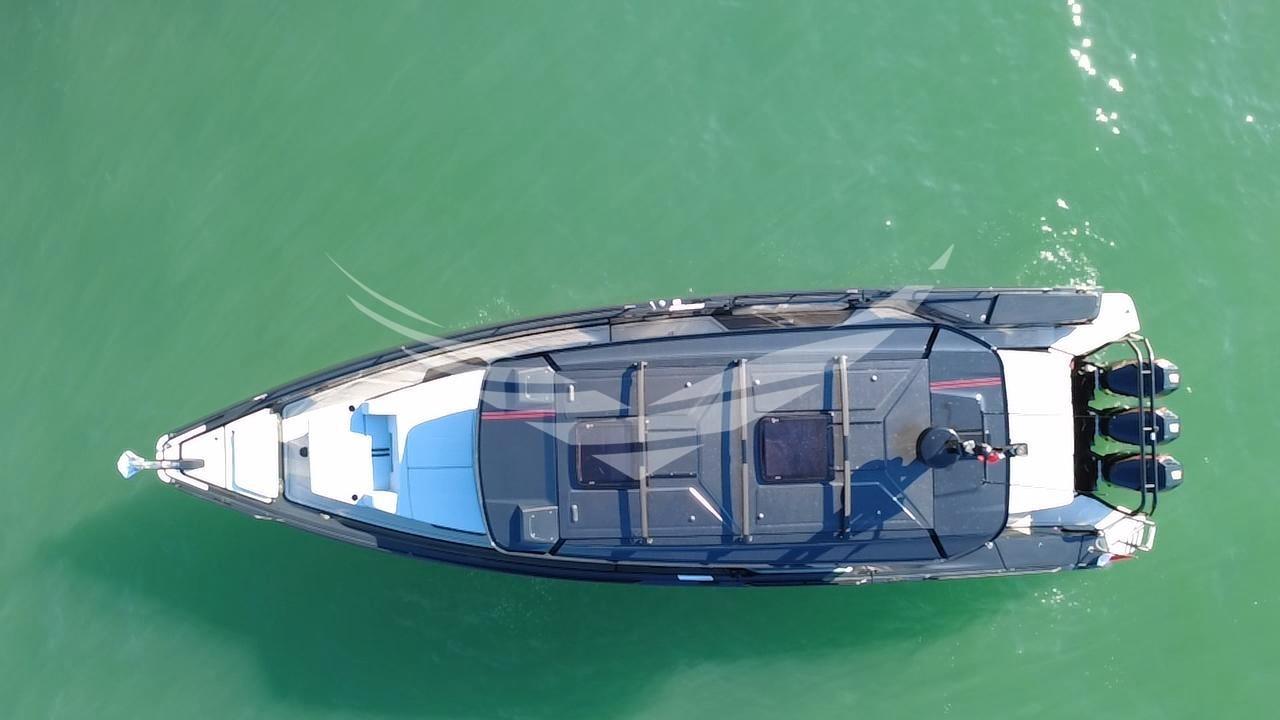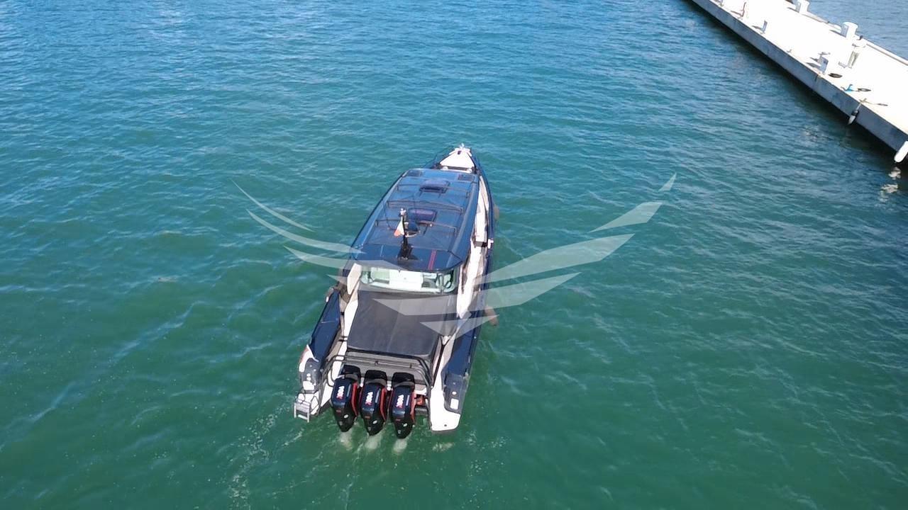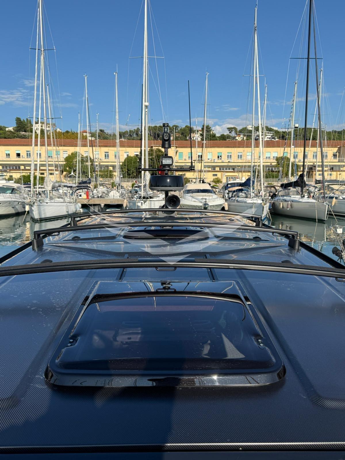 Una barca unica nel suo genere perchè il proprietario ha fatto realizzare due hard top rigidi con delle aperture elettriche. Con questa soluzione è migliorato tantissimo il comfort di bordo, l'efficienza della aria condizionata e la tenuta dall'acqua. I tetti sono stati realizzati con materiale composito molto leggero, calpestabile. Al centro dei due tetti sono stati posizionate due aperture elettriche di circa 1,50x0,8 m