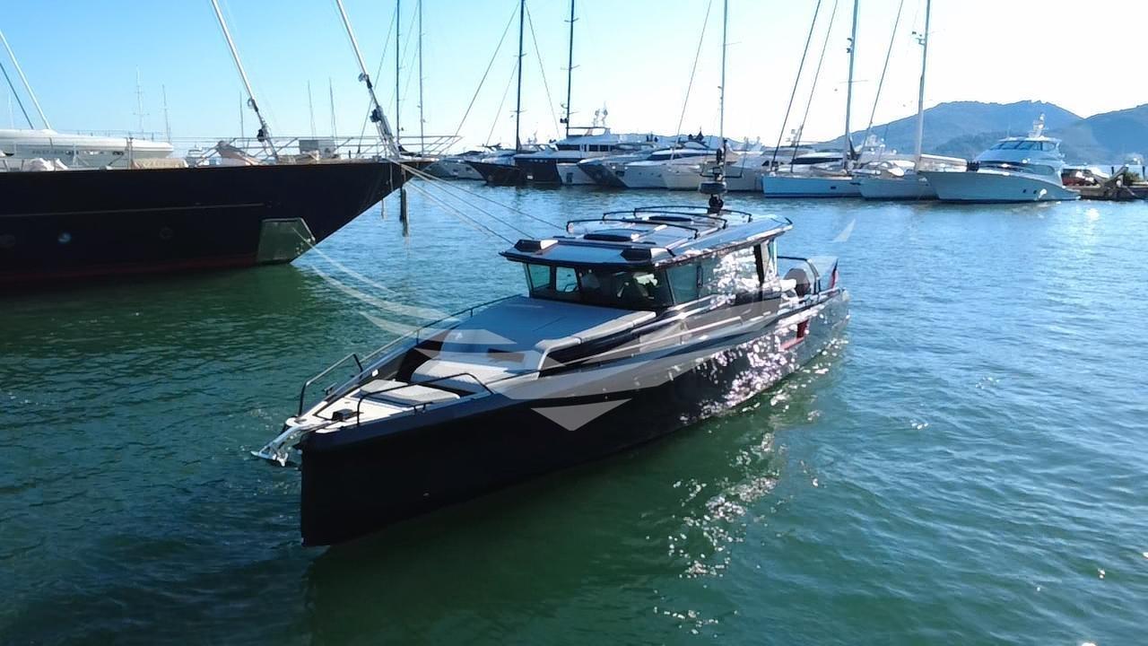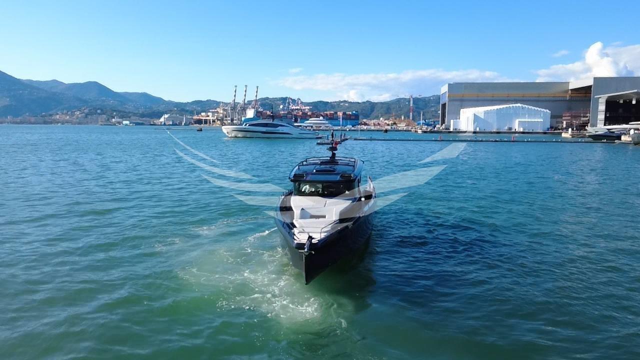 Ancora (con Skyhookdigital), Autoclave, Autogonfiabile, Auto-Trim, 7 Batterie (3 batterie di avviamento AGM, 3 batterie di servizio AGM e 1 batteria AGM per elica di prua/verricello - Pacco batterie litio 1000AM), Caricabatterie (da 60 ah), Cavo corrente di banchina, Colorazione speciale, Corrimano, Doccia esterna (sul ponte di poppa, lato sinistro), Elica di prua - bow thruster (Side-Power SE60, controllata da unità ISM), Faro orientabile (di profondità), Flap elettrici, Hard top, Luci subacquee, Monitor batteria (Litio), Piattaforma, 2 Porta laterale, Presa 220V banchina, Raddrizzatore, Tromba, Winch tonneggio di poppa, Winch tonneggio di prua.