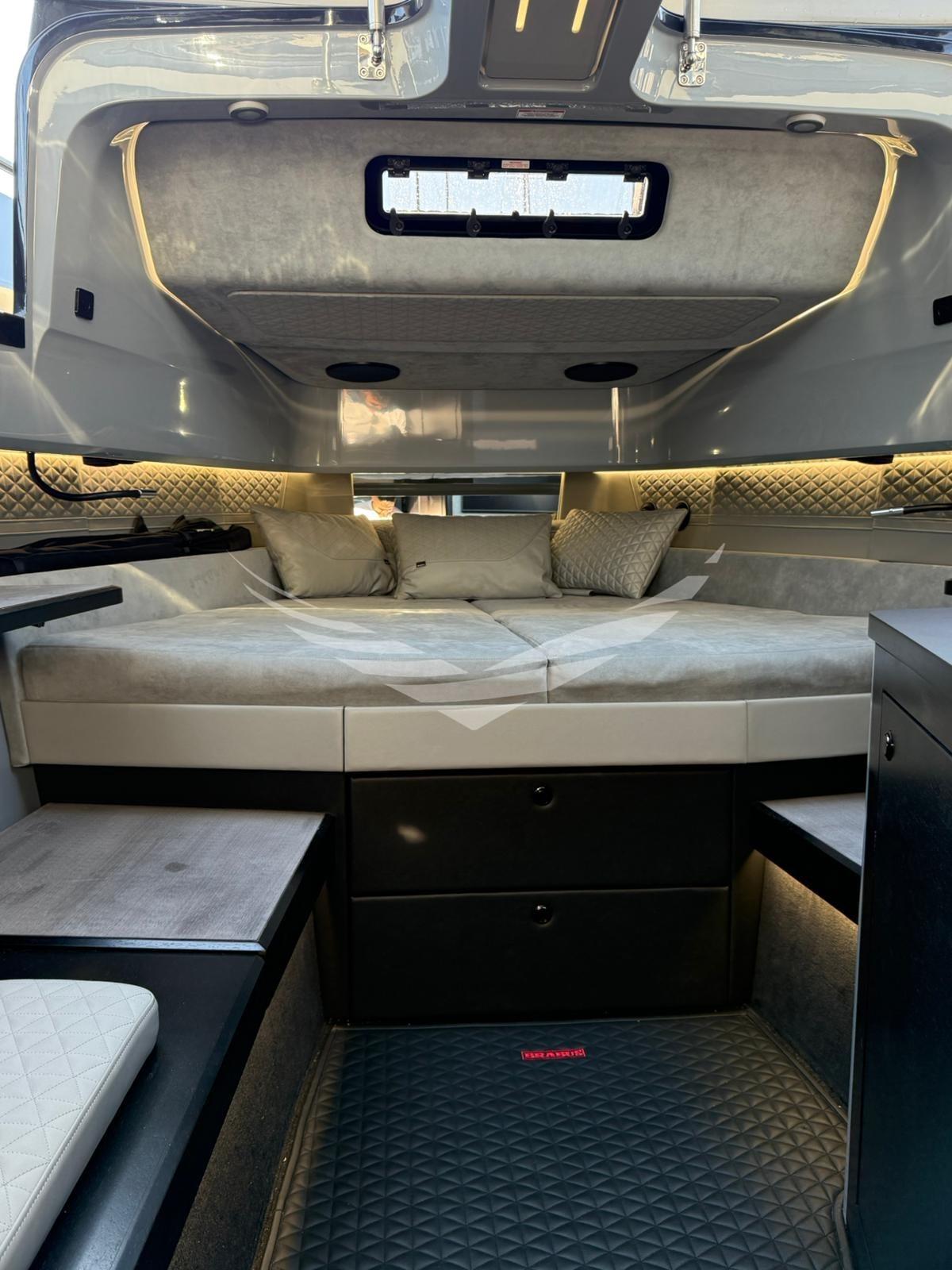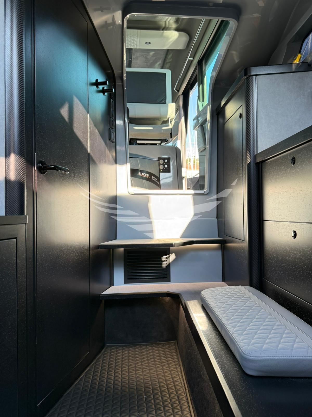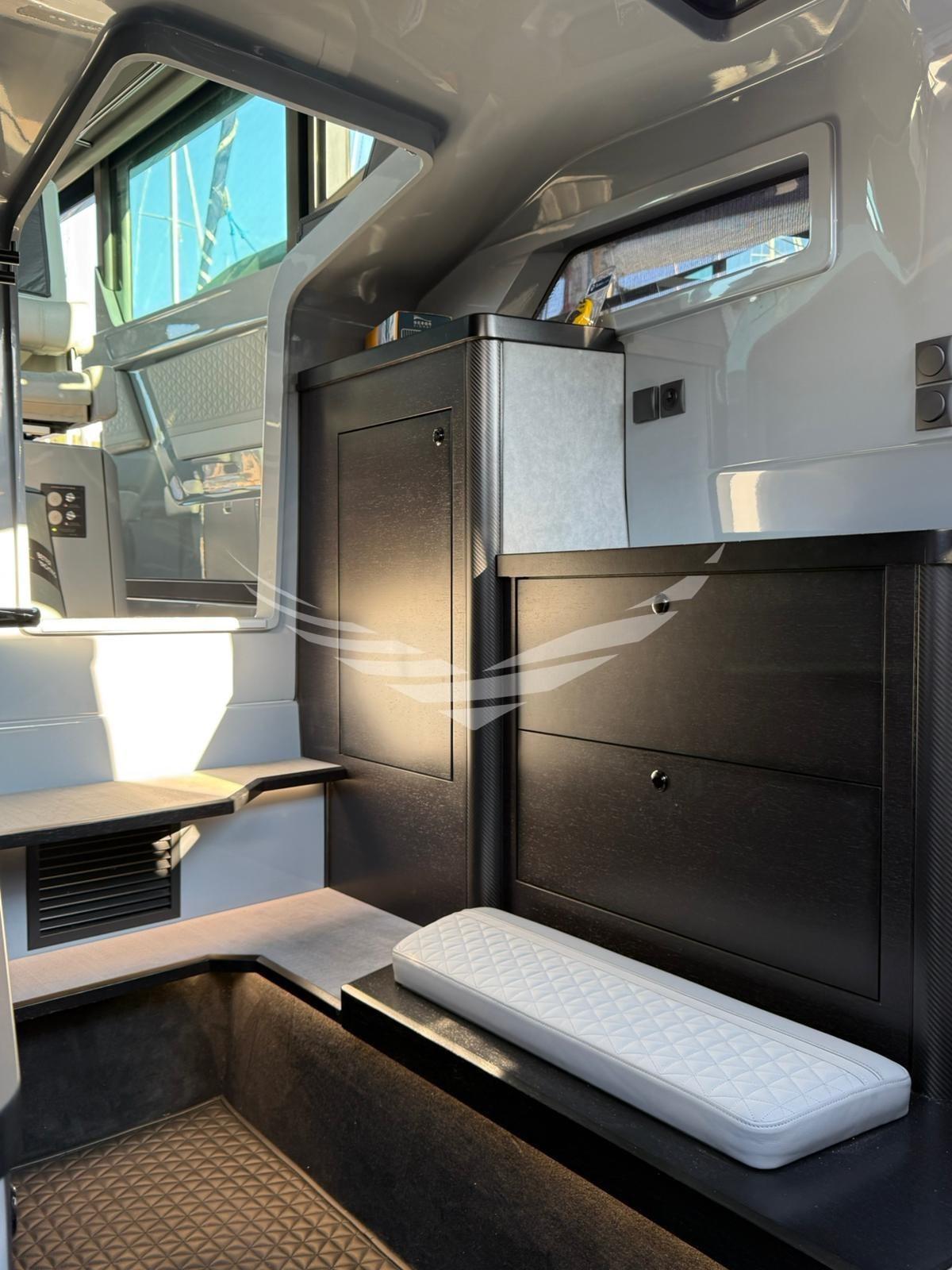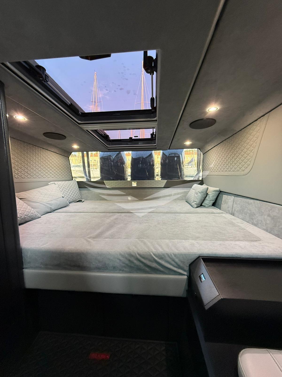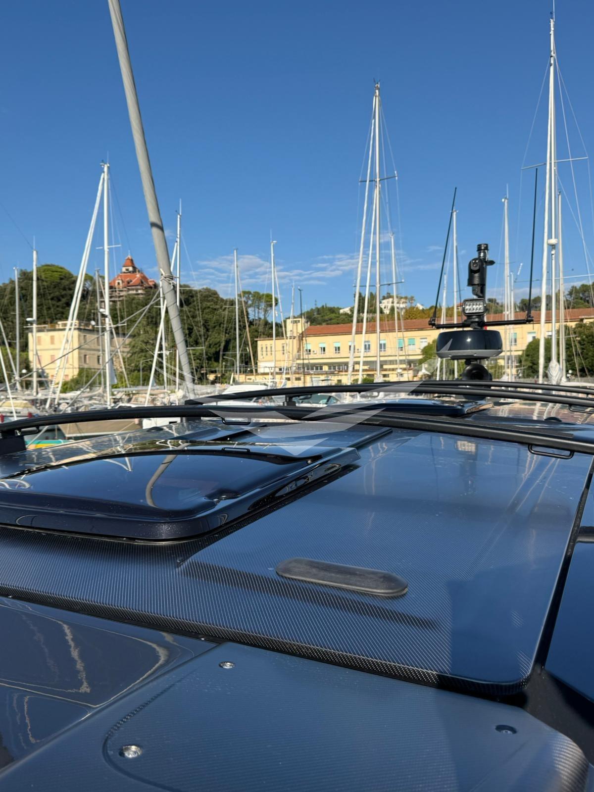 Een unieke boot in zijn soort omdat de eigenaar twee starre hardtops heeft laten maken met elektrische openingen. Met deze oplossing zijn het comfort aan boord, de efficiëntie van de airconditioning en de waterdichtheid aanzienlijk verbeterd. De daken waren gemaakt van zeer licht, beloopbaar composietmateriaal. In het midden van de twee daken zijn twee elektrische openingen van ca. 1,50x0,8 m gepositioneerd