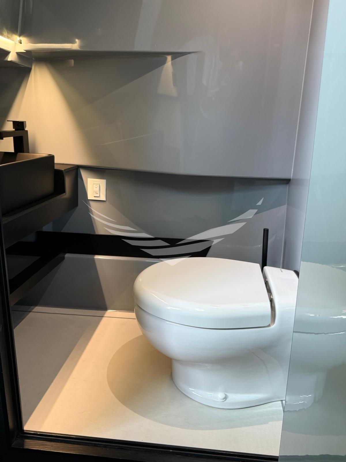 Acqua Calda, 2 Aria condizionata (n.1 macchina in cabina di prua e n.1 macchina in postazione pilota e cabina di poppa), Boiler, Impianto acque nere (120 lt), Indicatore del serbatoio del carburante, Indicatore del Serbatoio dell’Acqua, Inverter (da 6 KW), Pavimento interno in legno, Prese interne 12v, Prese interne 220v, Telecamera (bow), Termovisore, 2 WC marino elettrico (elettrico con scarico e serbatorio da 120 l).