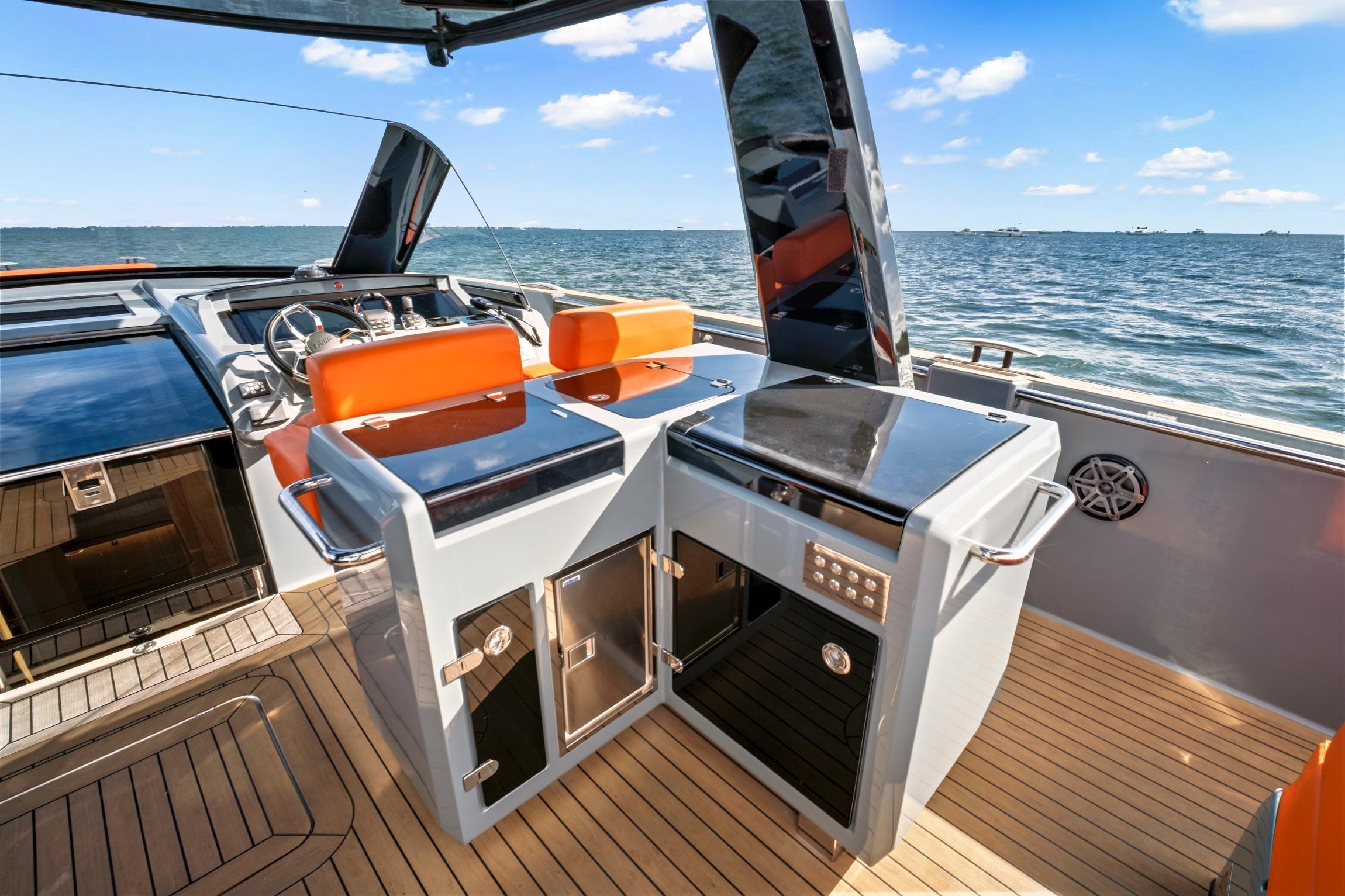 The Fjord 52 Open is a bold expression of modern luxury and performance, designed for the discerning boat owner who appreciates sleek design and smart functionality. Featuring a spacious single-level deck layout with a large stern sundeck, outdoor dining area, full galley with bar and refrigerator, and a stylish helm station, this yacht is built for effortless entertaining. Below deck, you'll find two generously sized cabins, each with its own bathroom, and a comfortable interior lounge perfect for extended trips. This particular Fjord 52 Open is located in Miami and is year round ready, having been meticulously maintained by a full-time crew. Recent upgrades include brand-new custom paint, all-new exterior and custom cushions, a state-of-the-art JL Audio sound system, a new air conditioning unit, Starlink mobile WiFi, and the GHOST security system—making it one of the most turnkey and well-equipped Fjord 52s available on the market today!
