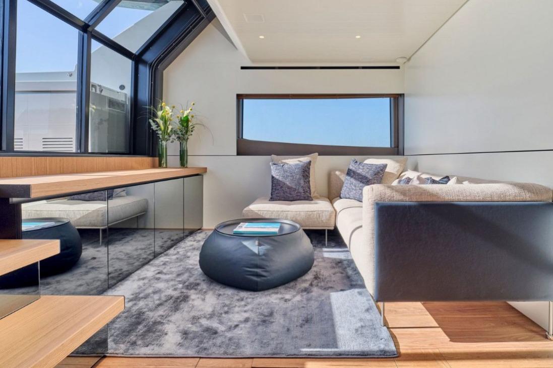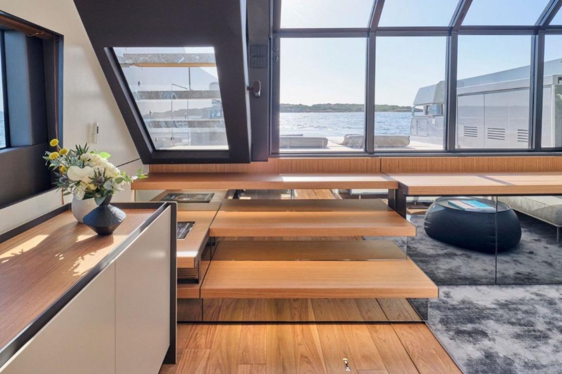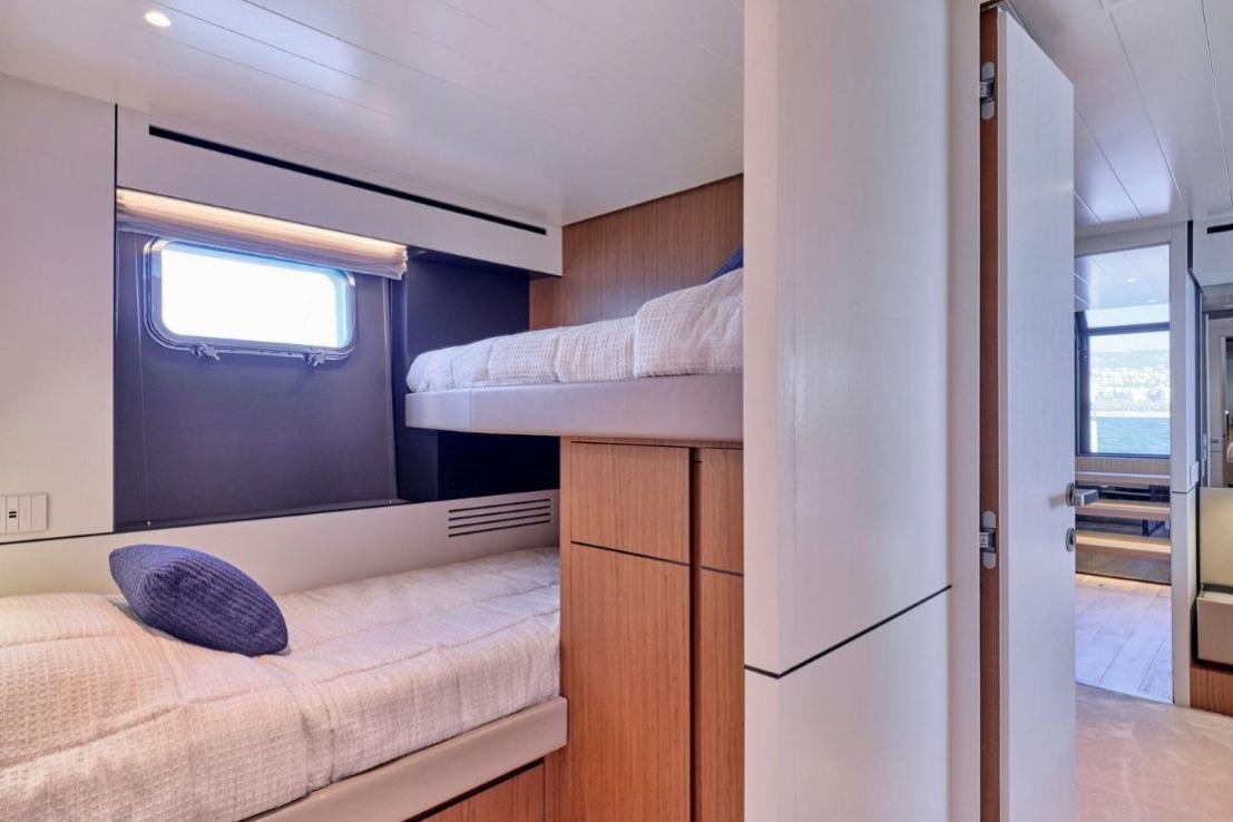 BGX63 got its saloon on the lower deck with direct access to the bathing platform, layout with three guest cabins and one crew cabin for two crew member, as well as a spacious area at the aft, which can be used as a beach club or as a storage for a tender and a jet ski. All in all, BGX 63 makes the impression of a much larger boat both from the outside and inside thanks to the masterfully planned space design and a vast open deck area. Equipped with Williams Sportjet 345, 1500 kg tender crane, Seakeeper 9 Gyro , bow thruster 170 kgf, Watermaker 130 lit, CCTV system3 fixed cameras, radar Garmin HD 4kw, wet bar in beach area, external docking station, Electric grill, and much more,