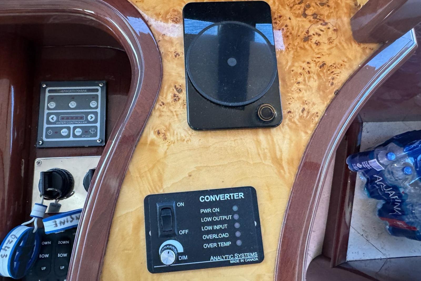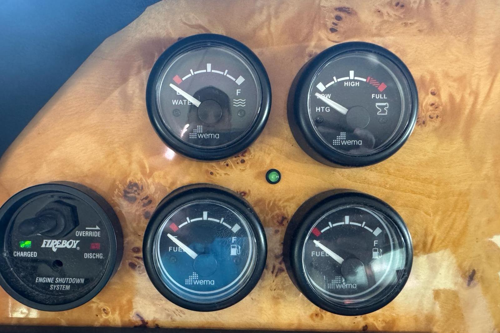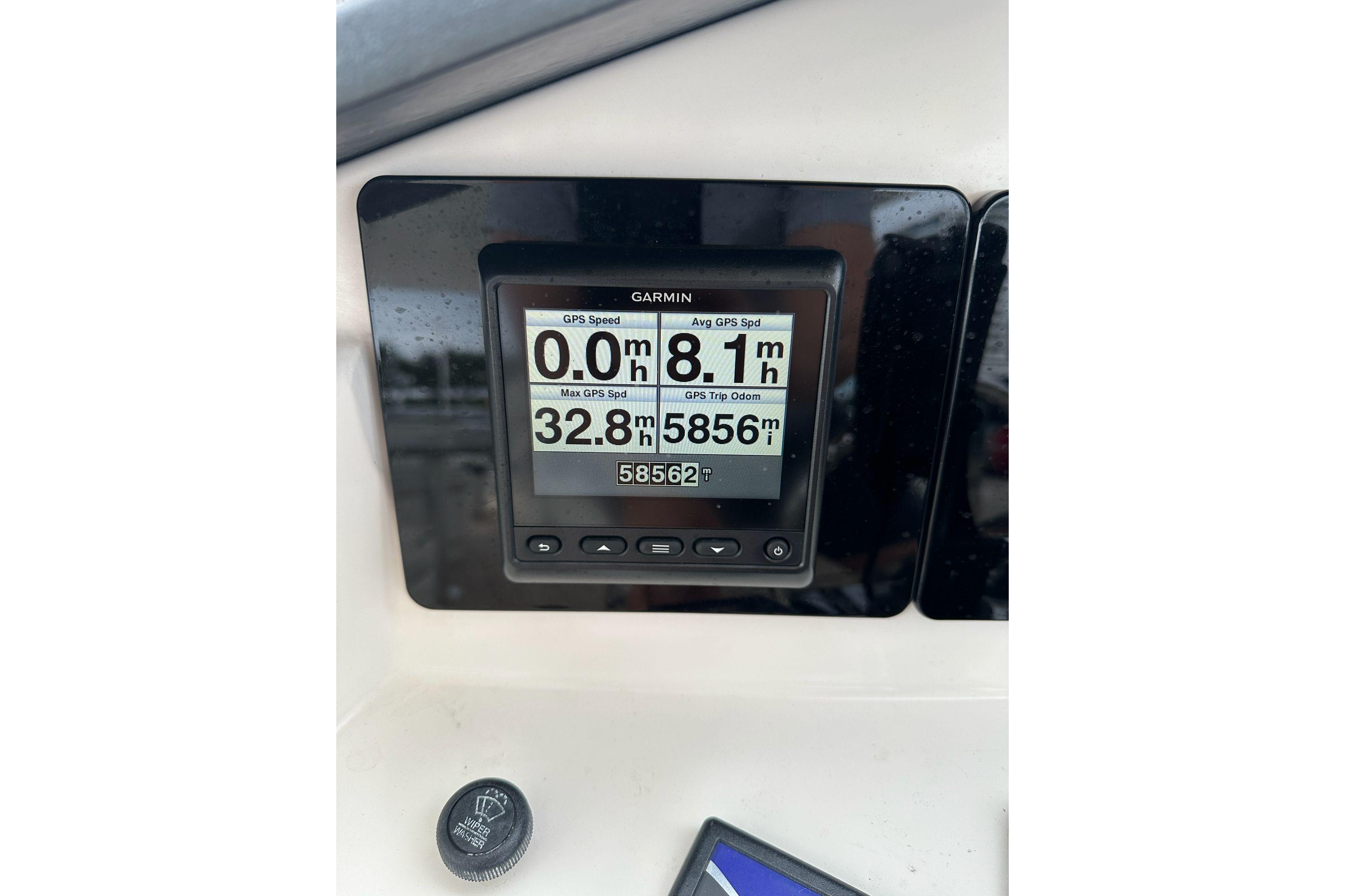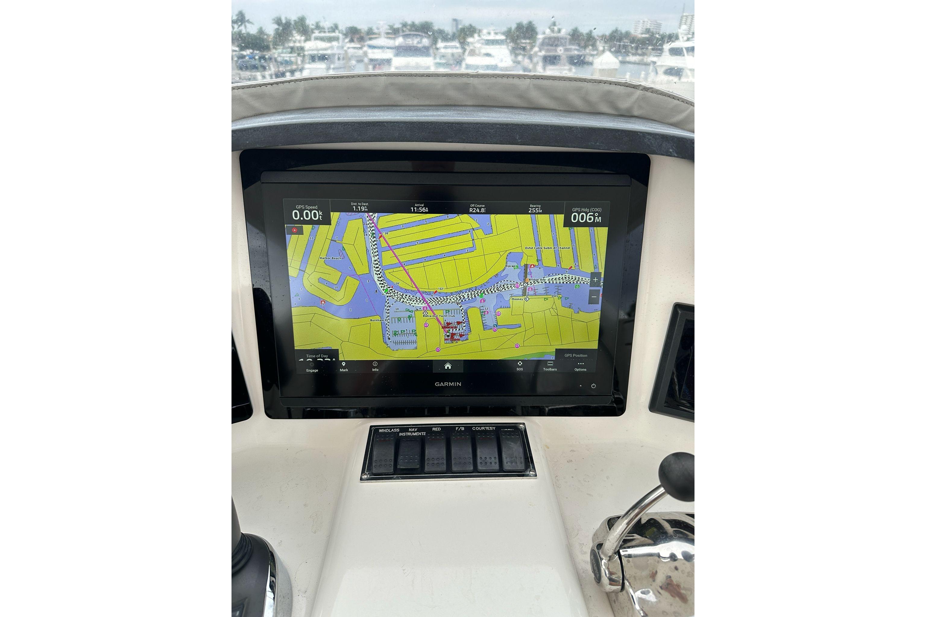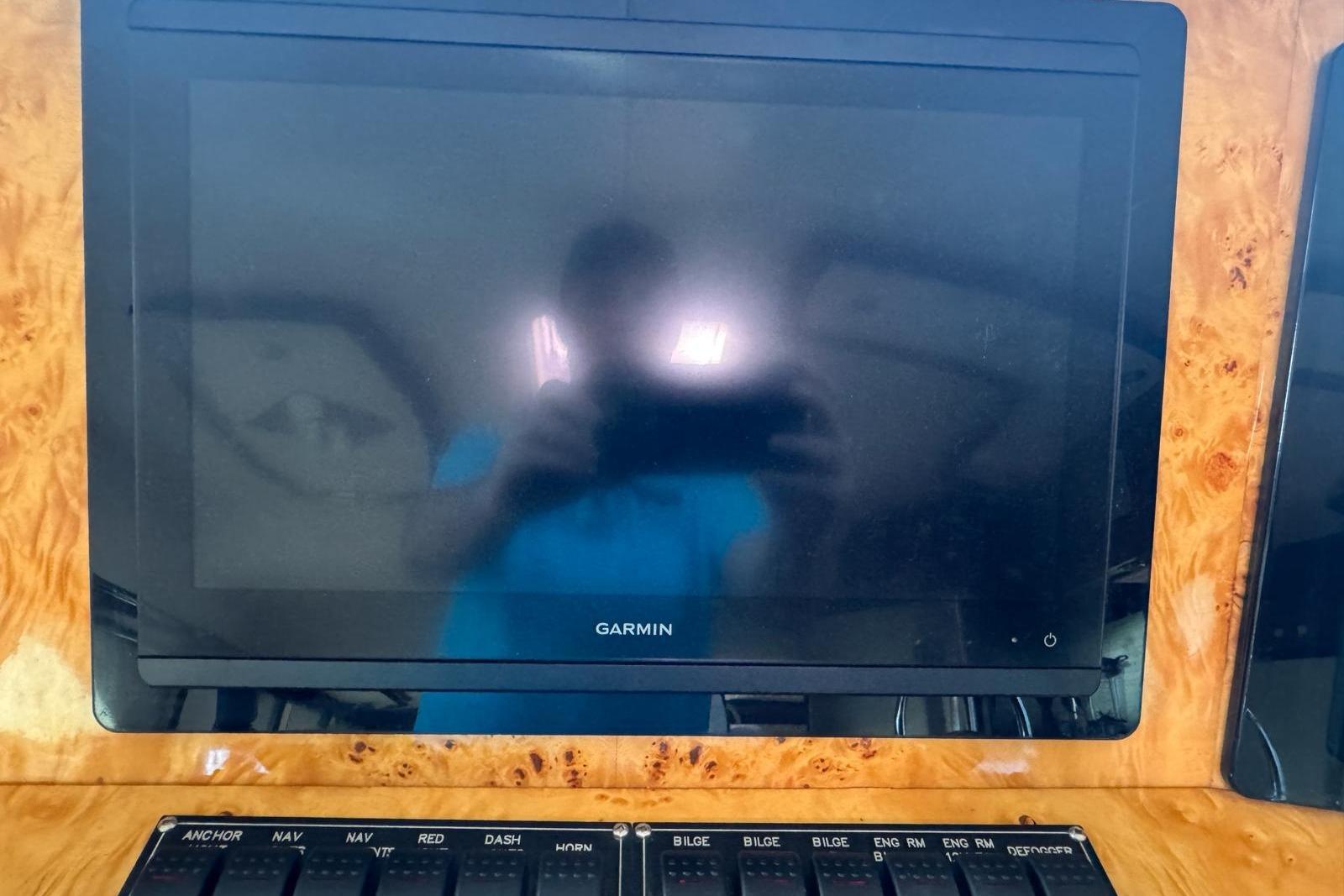 In 2022, the yacht’s navigation systems were fully upgraded to Garmin electronics, including dual Garmin 8616 multifunction displays (MFDs), autopilot, and full Volvo LCD engine displays at both the flybridge and lower helm stations. The yacht is equipped with three joystick docking stations—flybridge, salon, and aft port side—for precise and effortless maneuvering.