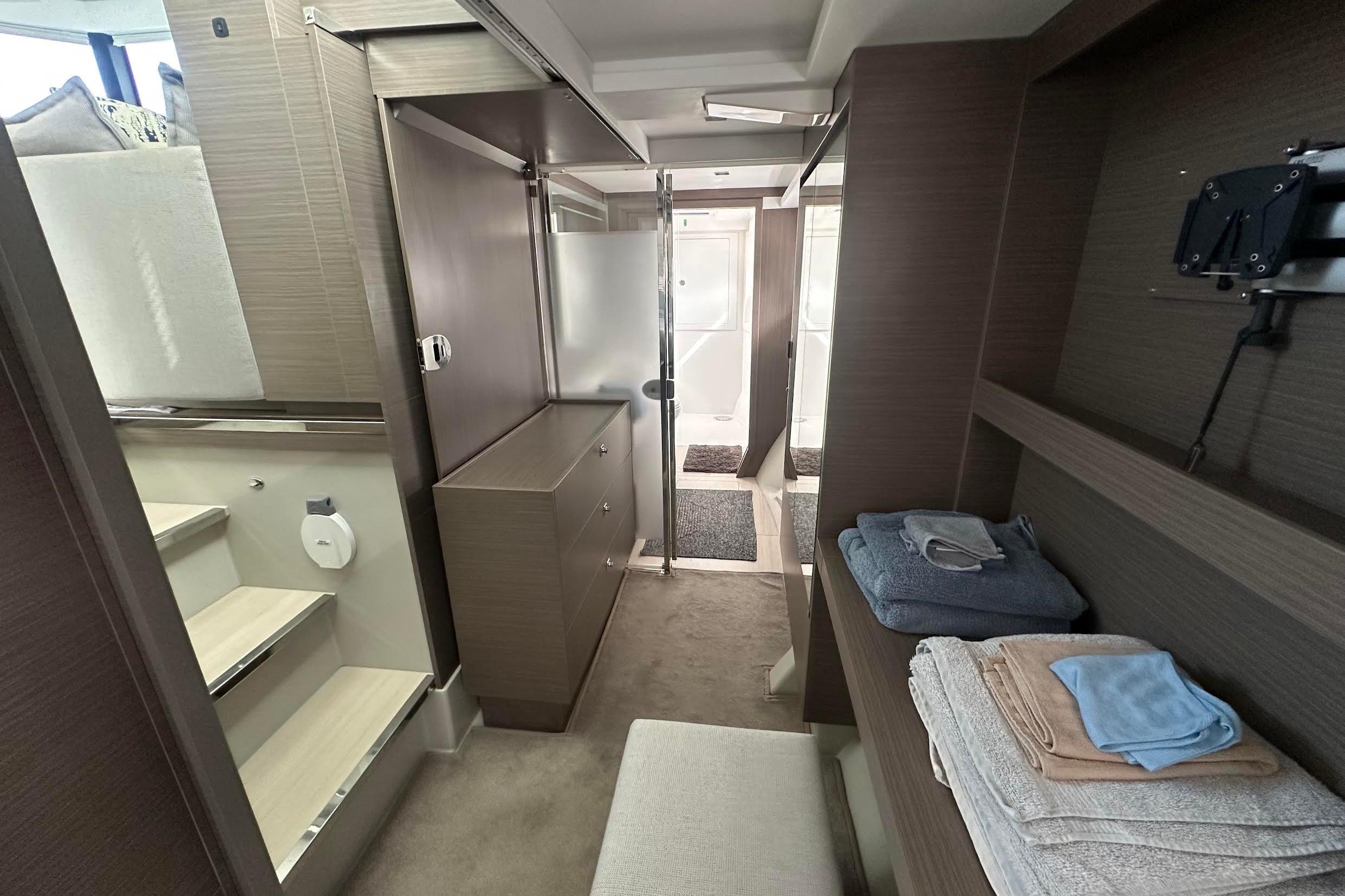 This well-equipped, low-hour 2023 Leopard 46PC power catamaran represents the perfect blend of luxury, performance, and practical living space. Configured in the desirable three-cabin layout, each with a private ensuite and separate shower, this vessel is ideally suited for extended cruising or living aboard in complete comfort. The thoughtful design ensures privacy and convenience for owners and guests alike.