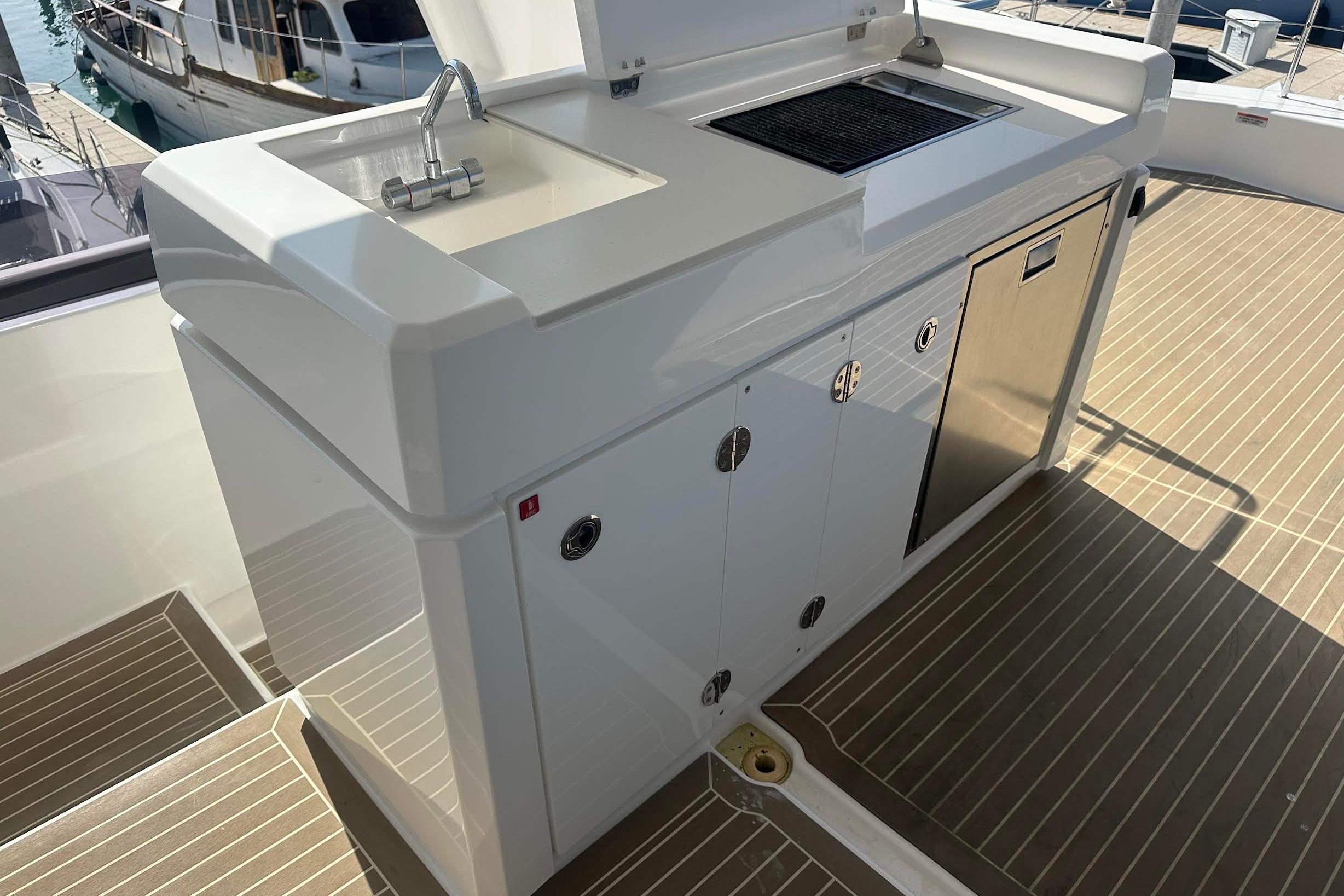 - Flybridge wet bar featuring: - Dedicated 12V refrigerator