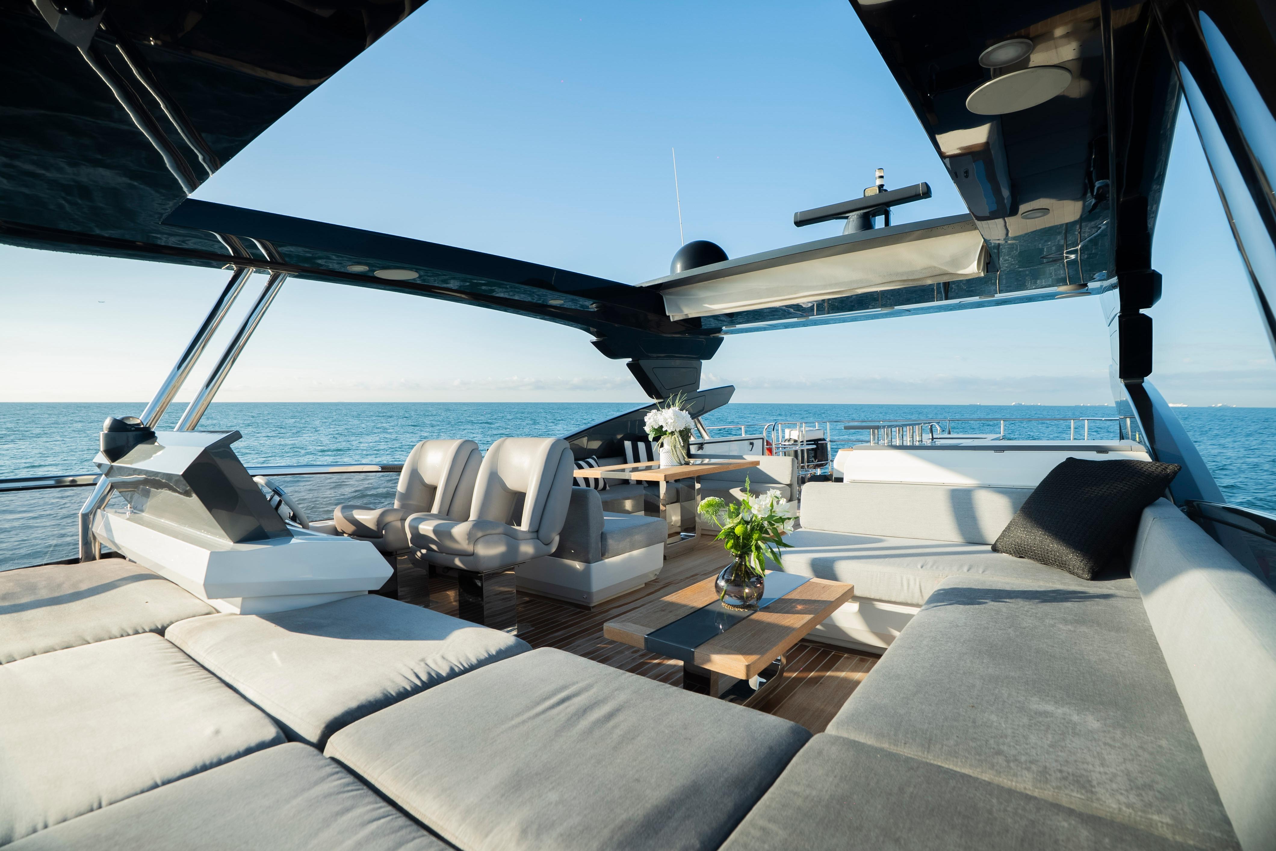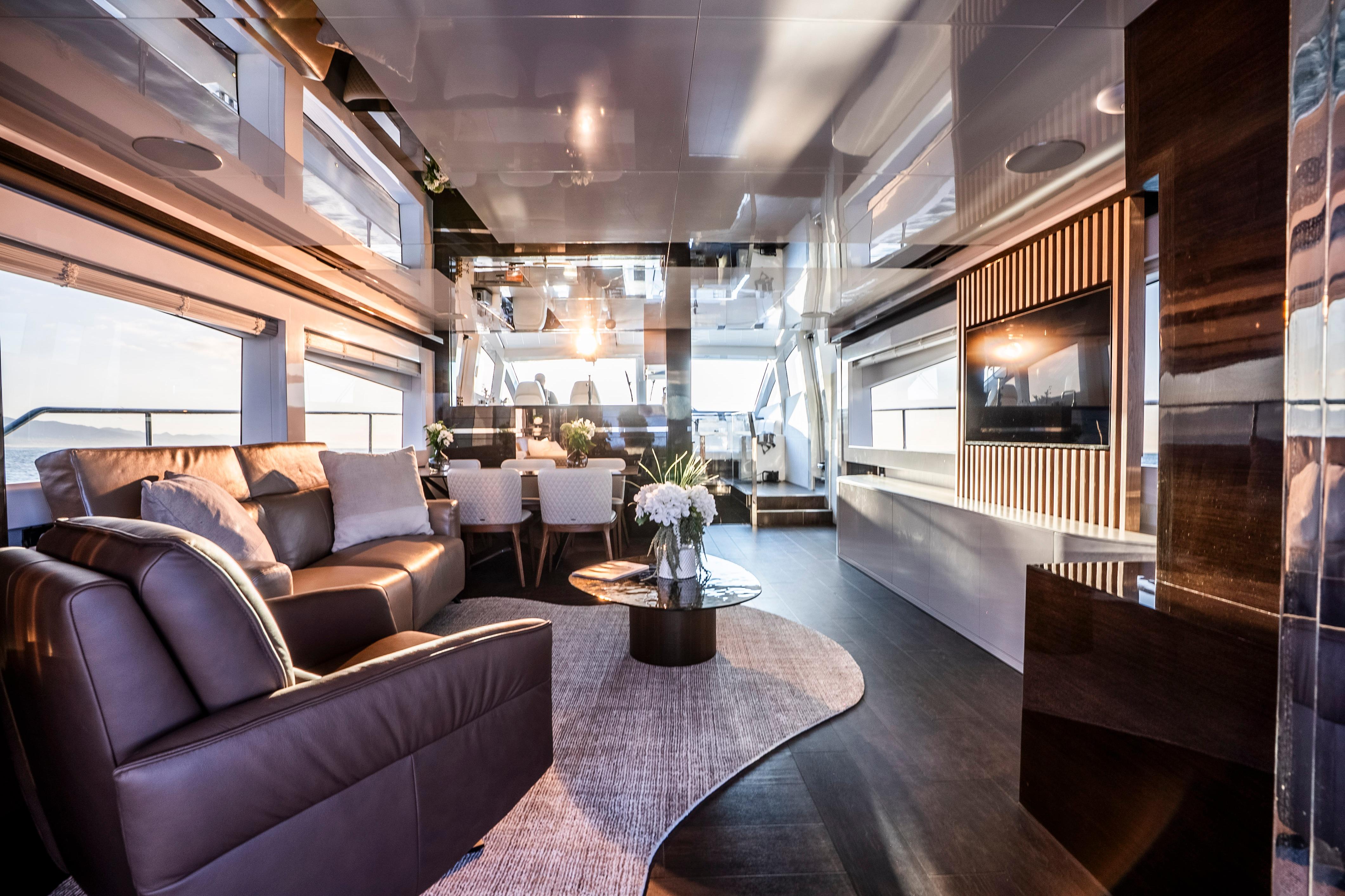 OMNIA is a 2018 Pearl 80 flybridge yacht built by Pearl Yachts.