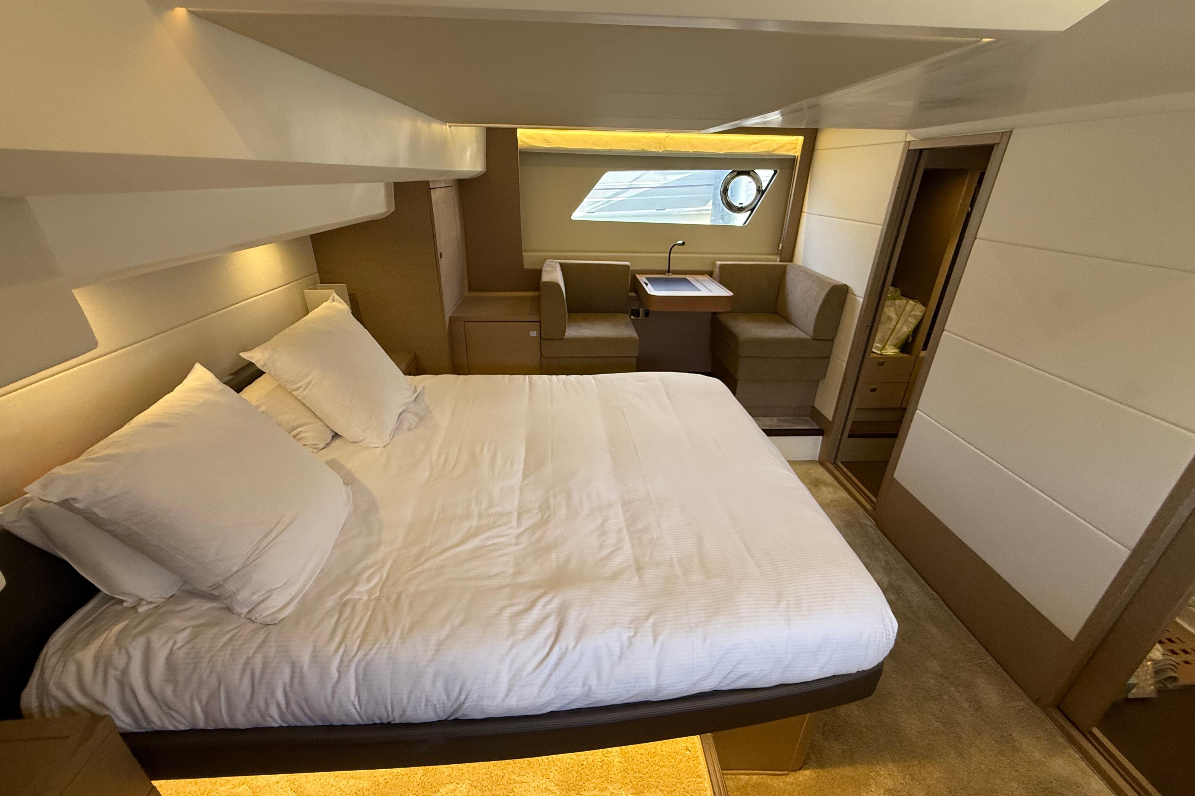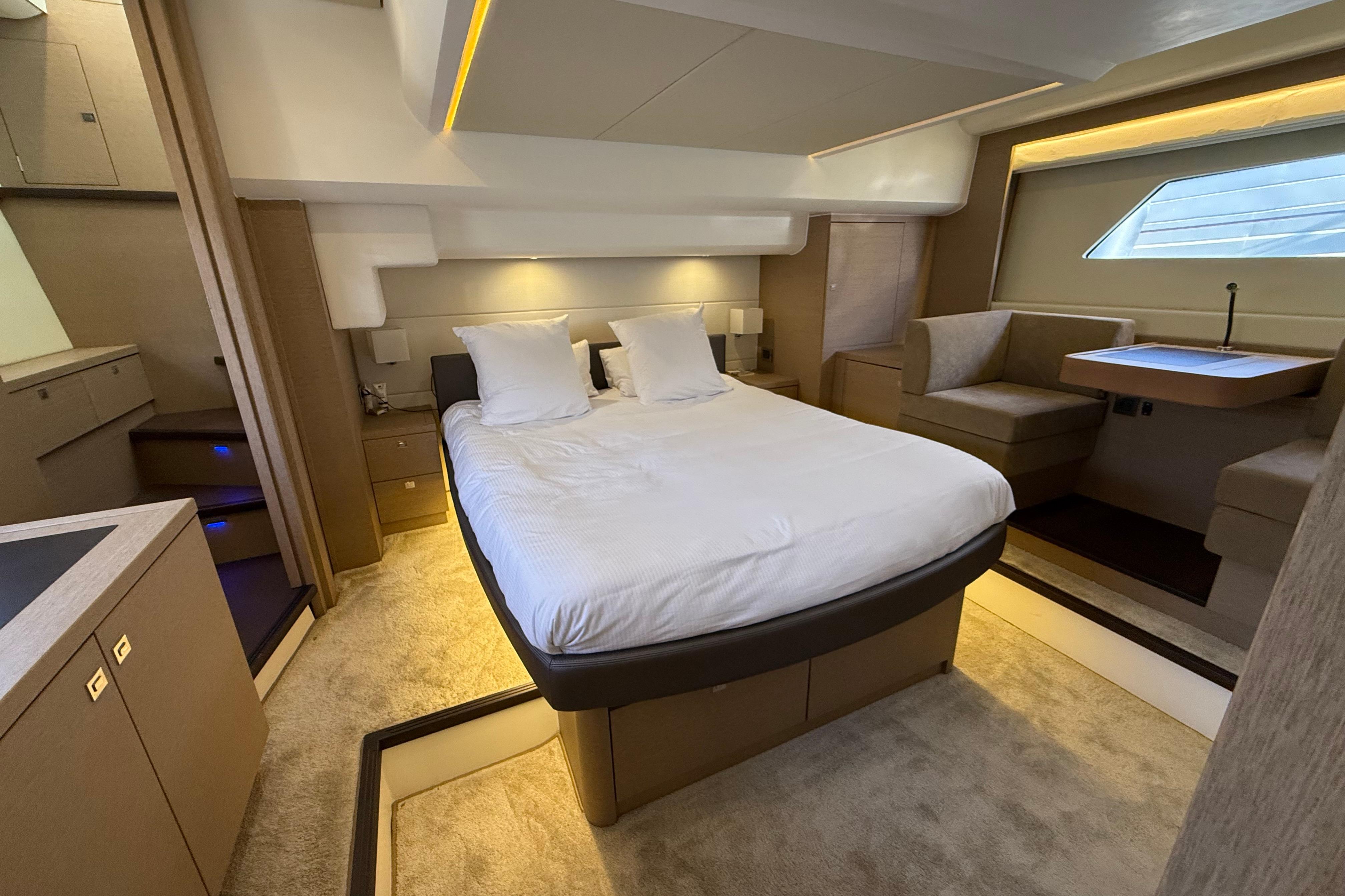 Alliance parfaite entre élégance, confort et performance, ce yacht signé Jeanneau Prestige offre une expérience de navigation raffinée. Propulsé par deux moteurs Cummins QSC 8.3 de 600 cv, il se distingue par sa douceur en mer et son aménagement pensé pour le bien-être à bord.