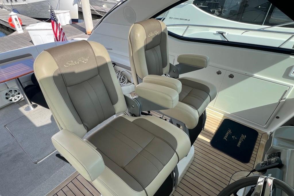 Not all accessories shown or described herein are standard equipment or even available as options. Some features and options may not be available when a boat is built for outside North America and/or has CE Certification. Options and features are subject to change without notice. Not all model-year boats may contain all the features or meet the specifications described herein. Confirm availability of all accessories and equipment with an authorized Sea Ray dealer prior to purchase.