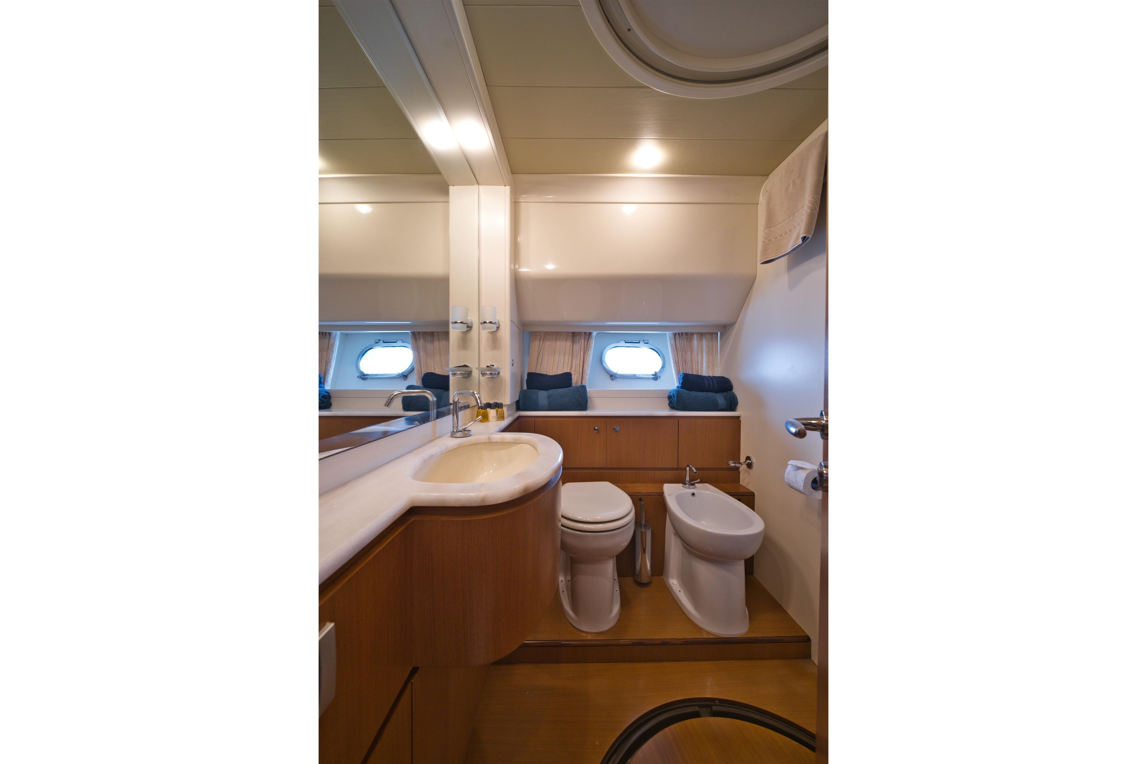 Air Conditioning (with 3 compressors, 93000 Btu, for Salon and all cabins), BBQ/Grill (on flybridge), Black Water Tank, Electric Toilet, Heater,
