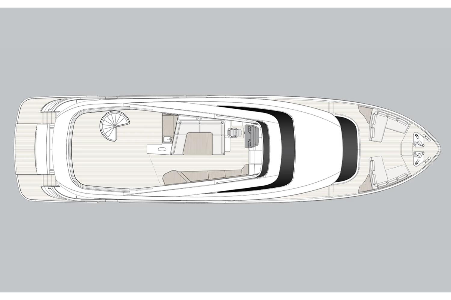 Lounge furniture on aft fly in Batyline fabric (one bench on aft, one bench on starboard, two pouffs and three coffee tables)