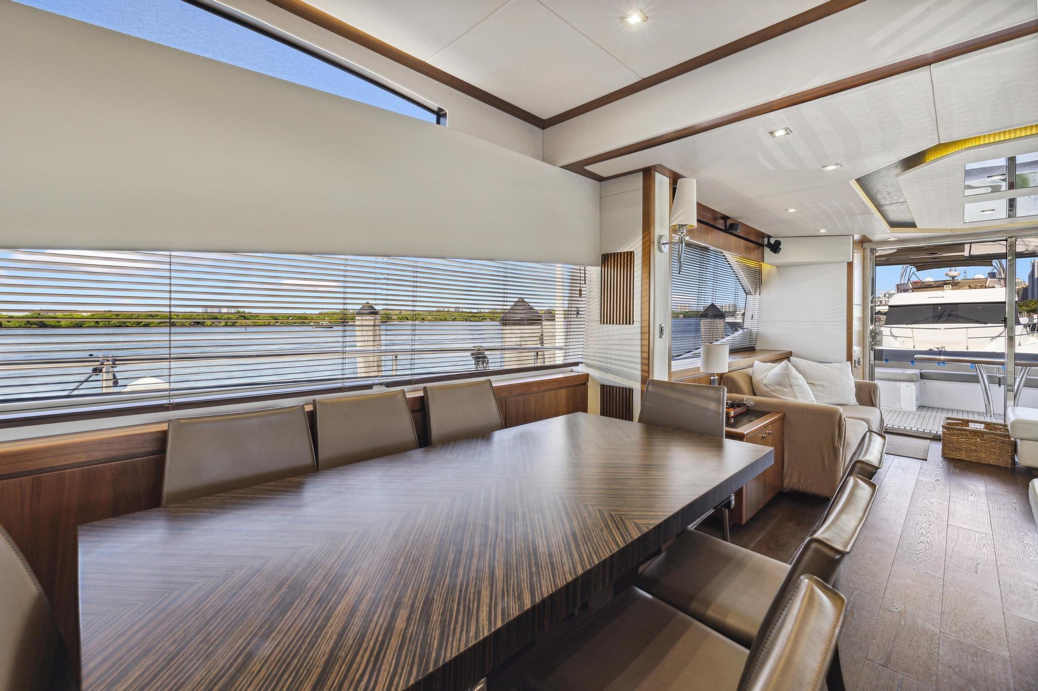 Notable highlights include V-Kool window treatment on all lower salon windows, Raymarine night vision, IMTRA fin stabilization for a smooth ride, and Yacht Controller for effortless handling.