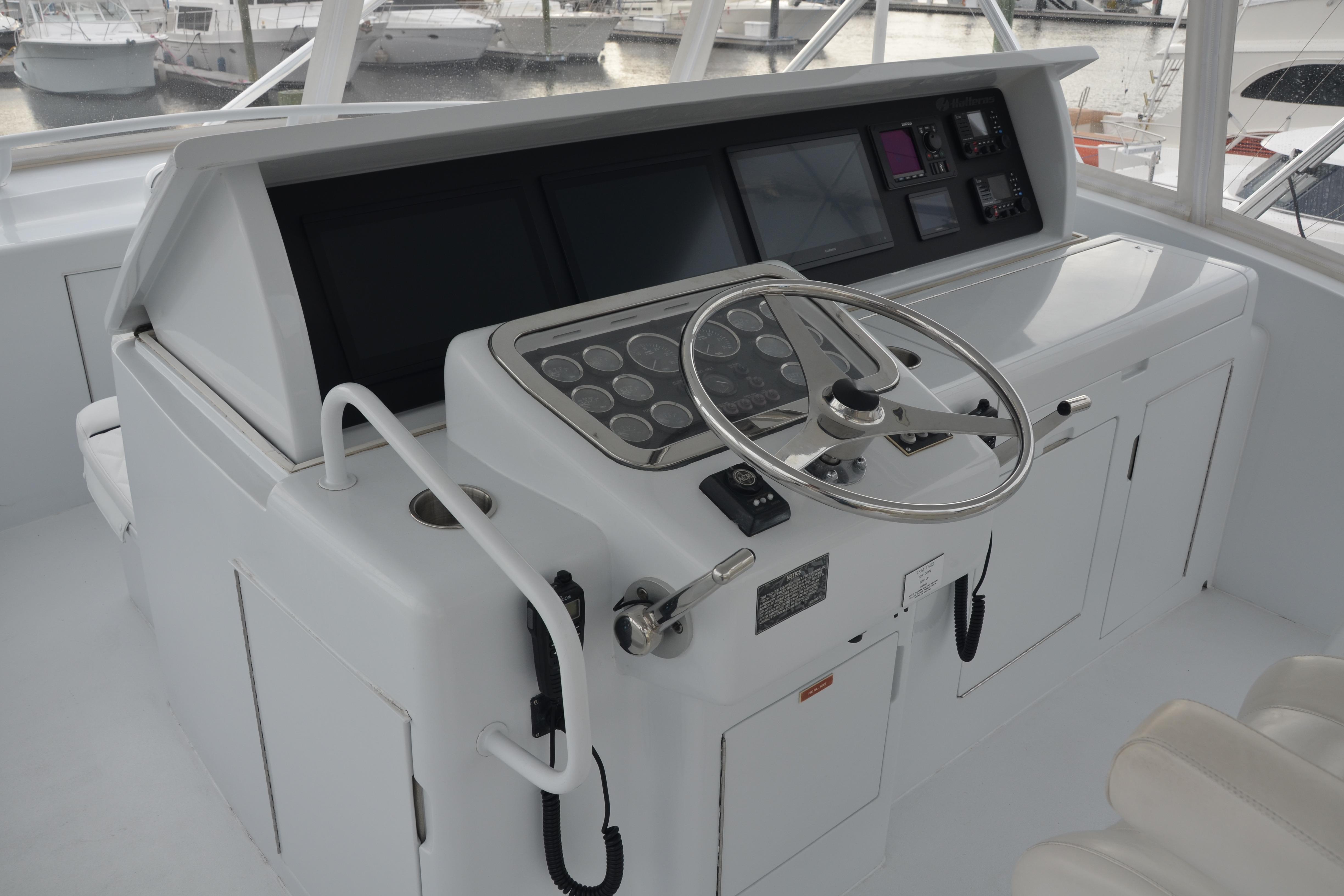 The Hatteras 55 Convertible, designed for the serious sportfishing enthusiast, provides excellent maneuverability, a smooth ride, and luxury amenities. With a sleek and contemporary exterior, the 55 offers a long list of standard features that are expected from a world-class sportfishing convertible. This three-stateroom, wide-beam boat features an expansive salon and dinette area designed to appeal to both the cruiser and the serious sportfisherman. The master and bow staterooms boast queen-size tapered berths with convenient under-berth storage and spacious heads. The 55's flybridge comes with a tournament console featuring a power-actuated electronics console. Fully equipped for a day of fishing, this 157-square-foot cockpit comes complete with a custom mezzanine, rod holders, an integrated transom fish box, plus freshwater and seawater washdowns.