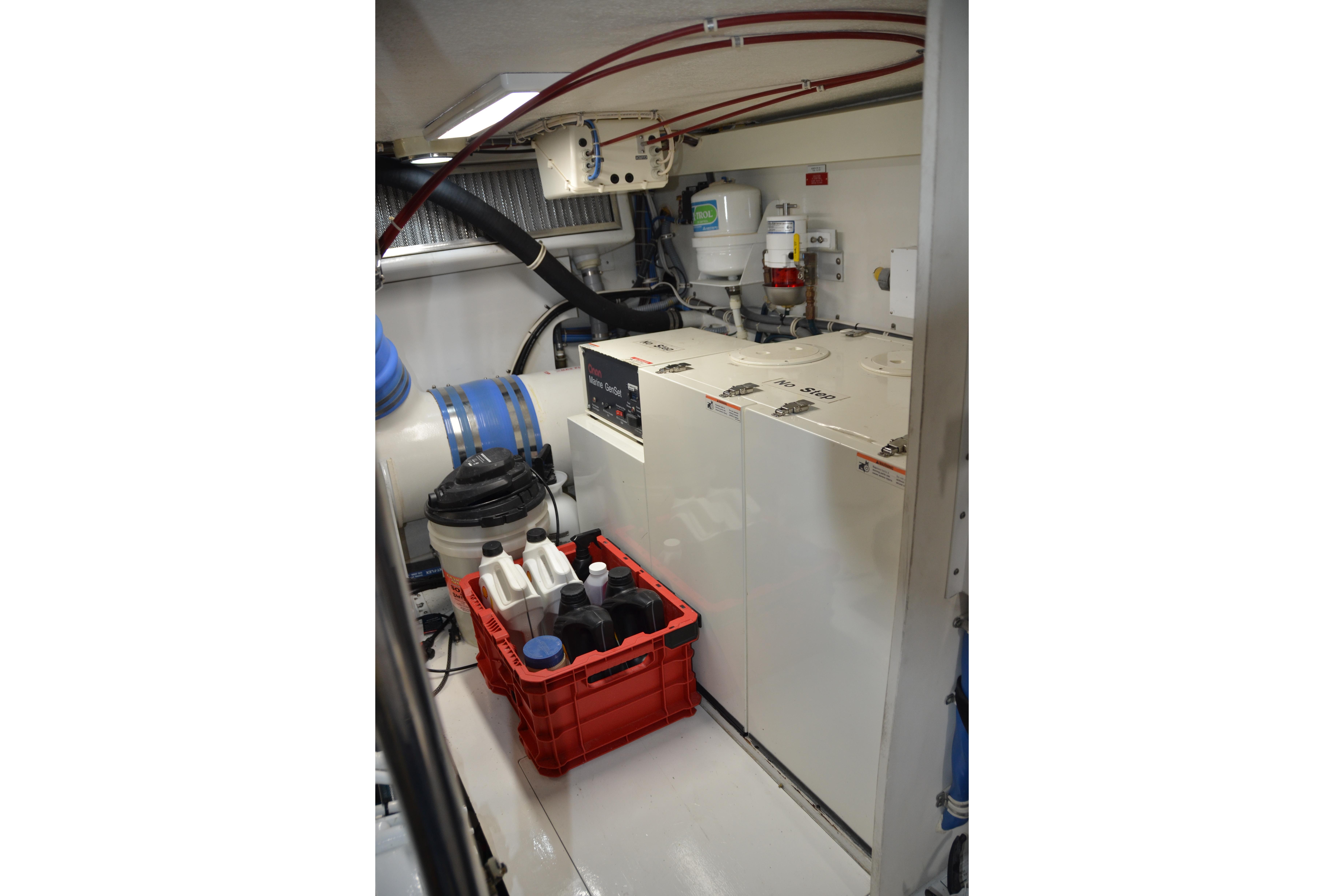 - 21.5kW freshwater-cooled diesel generator, seawater strainer, remote start, hour meter, water lift muffler and sound enclosure