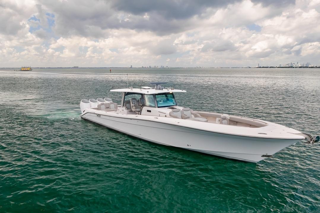 NEW TO THE MARKET: 2023 HCB 53 Sueños in amazing condition. Powered by Quad Mercury 600 HP Verados with only 190 hours! Sea Keeper 6 Equipped.