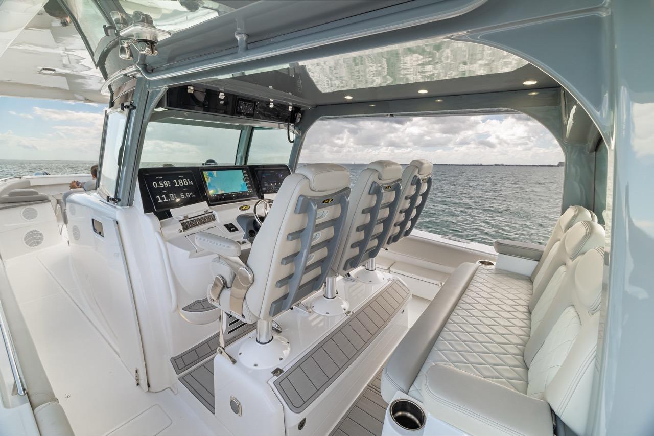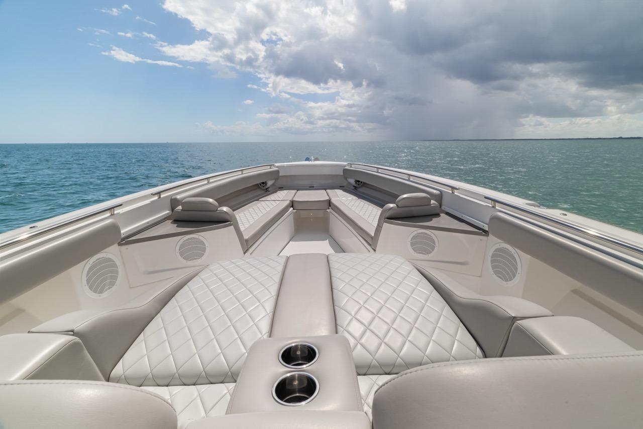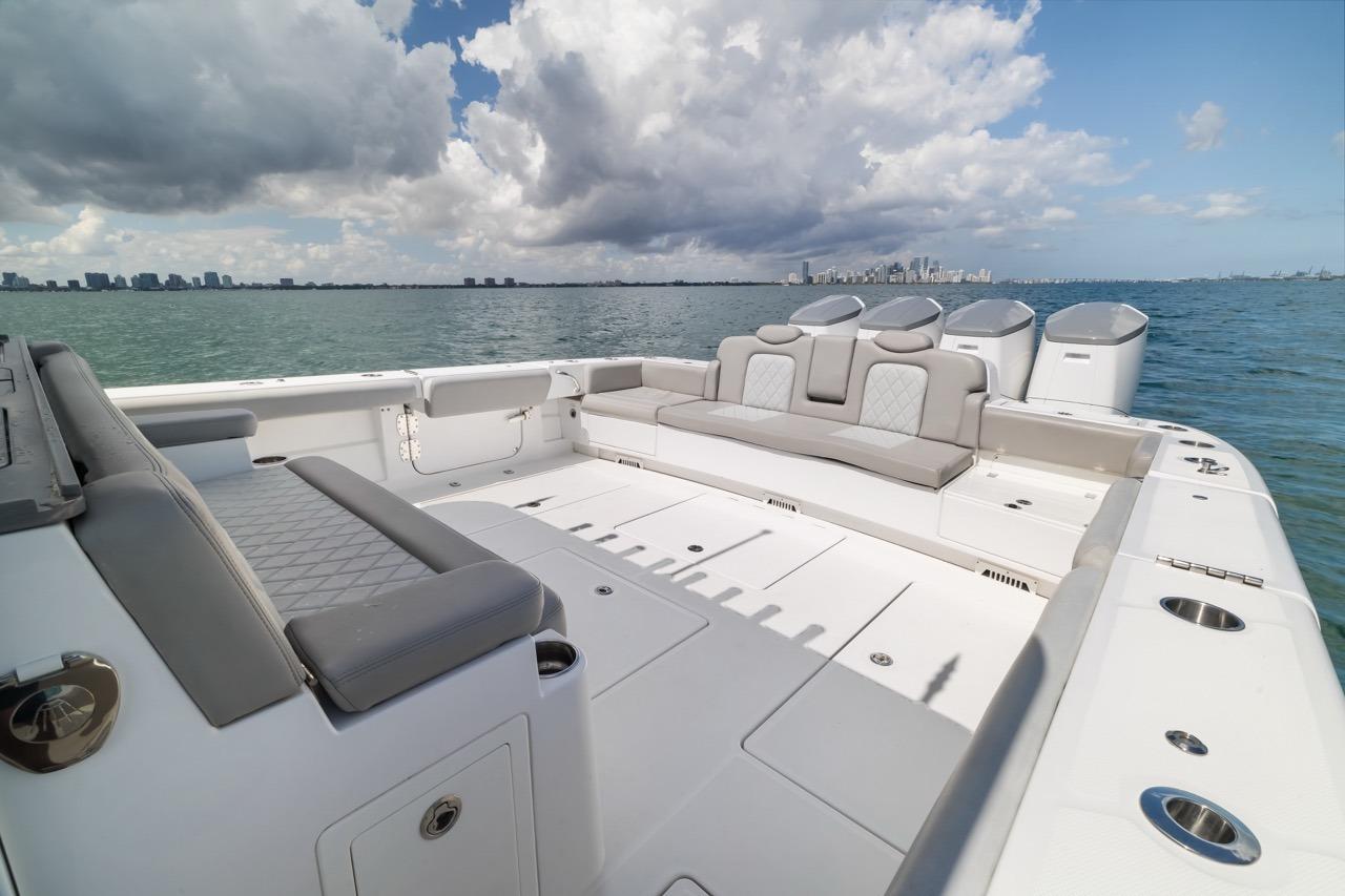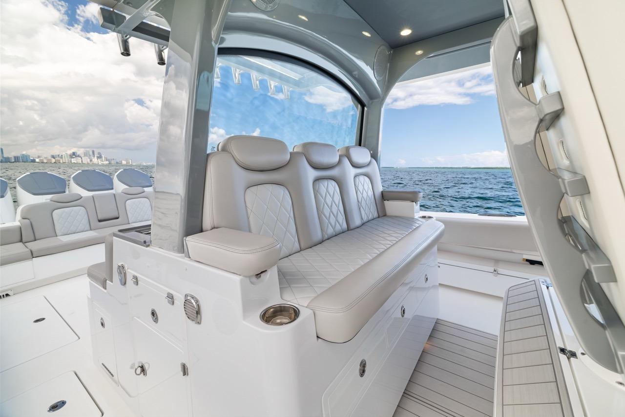 - Aft-Facing Seating with (3) drawer beverage fridges