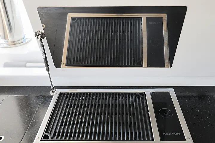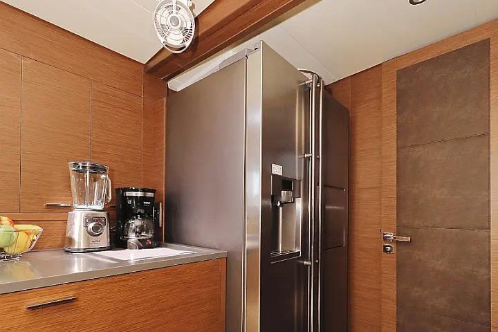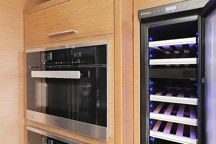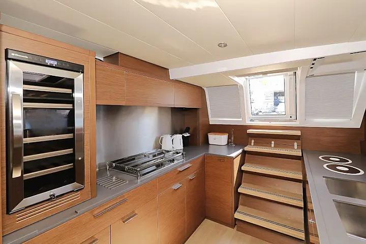 Galley: Fully equipped with oven, wine fridge, microwave, ceramic hob, dual refrigerators/freezers, dishwasher, and ample counter space