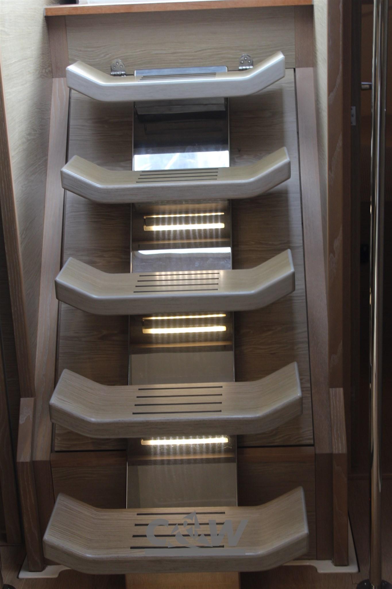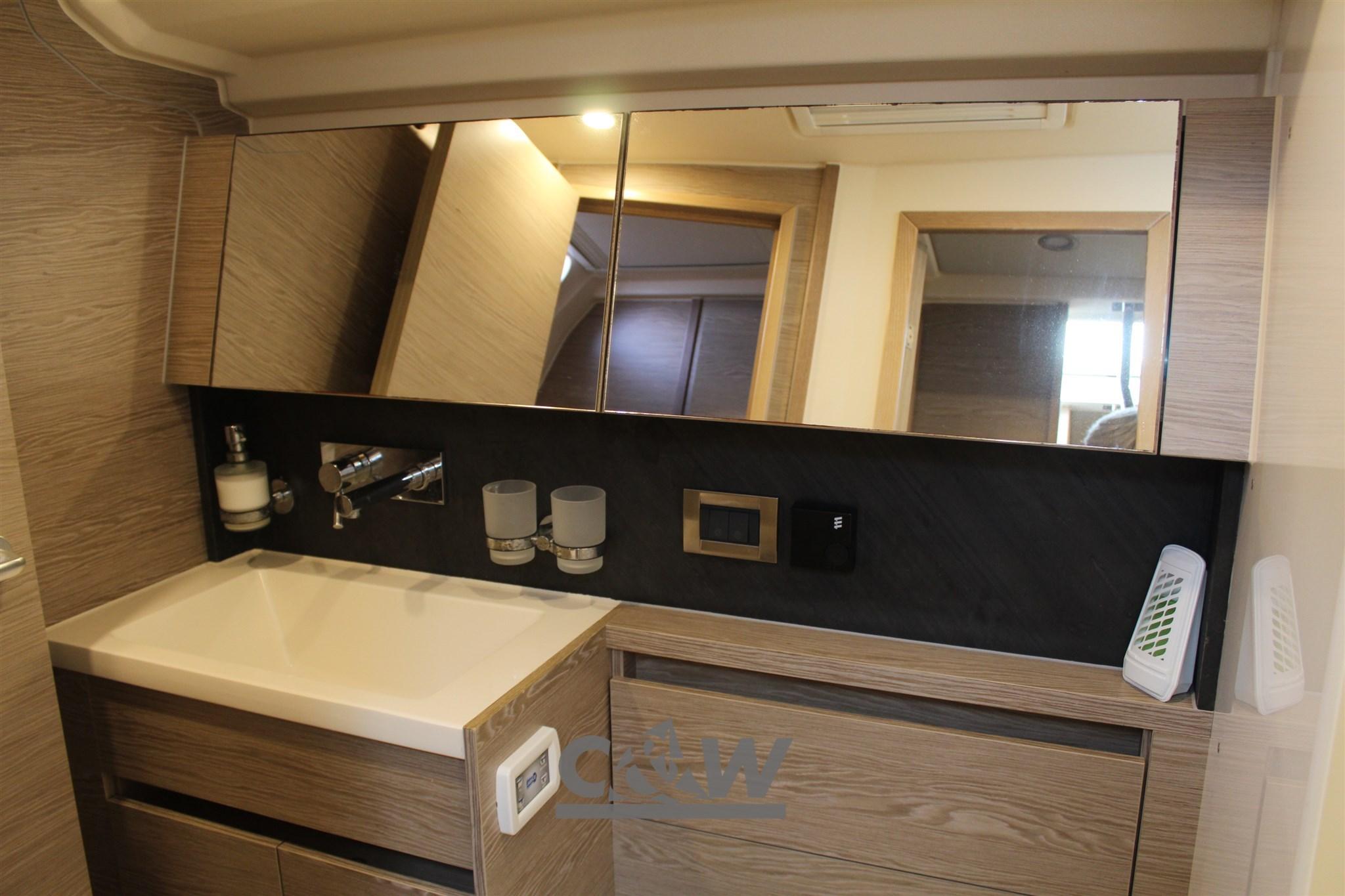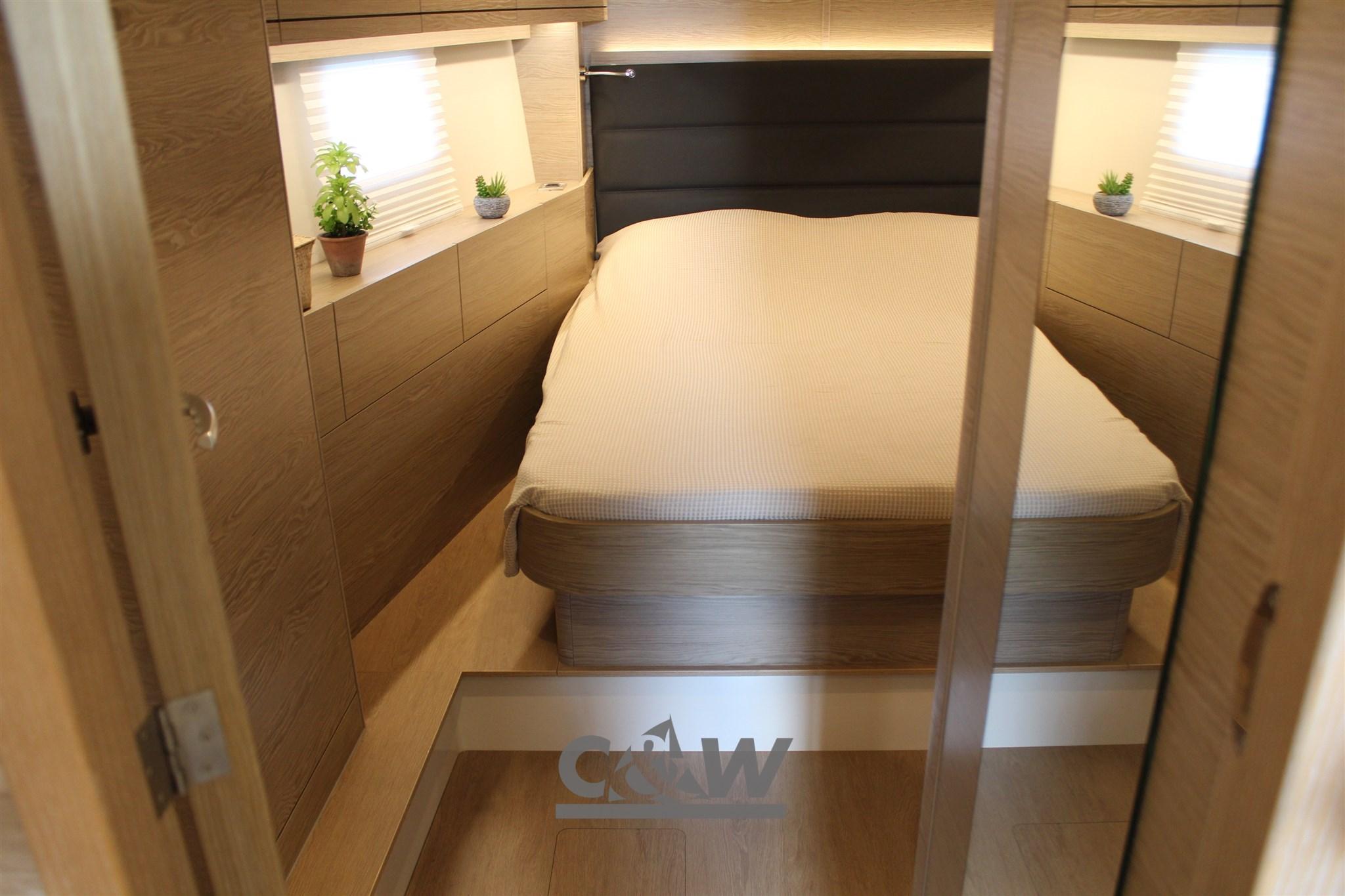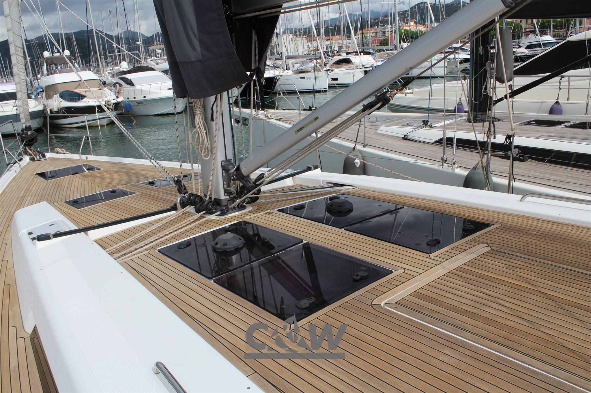 Anchor (Delta 25 kg + 60 mt catena diametro 10), 5 Batteries (1x90 Ah + 4x160 Ah AGM), Twin Steering, 2 cockpit table (abbassabile elettricamente inclusa cuscineria), Teak Deckhouse, 2 Winch (Lewmar 55 ST EVO), 2 Winch Electric (Lewmar 55 EST EVO).