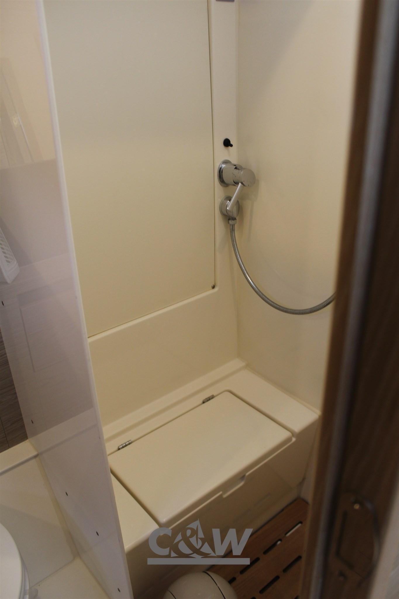 second forestay with electric furler, hydraulic platform with remote control and swim ladder, double roller with second forestay attachment and gennaker,