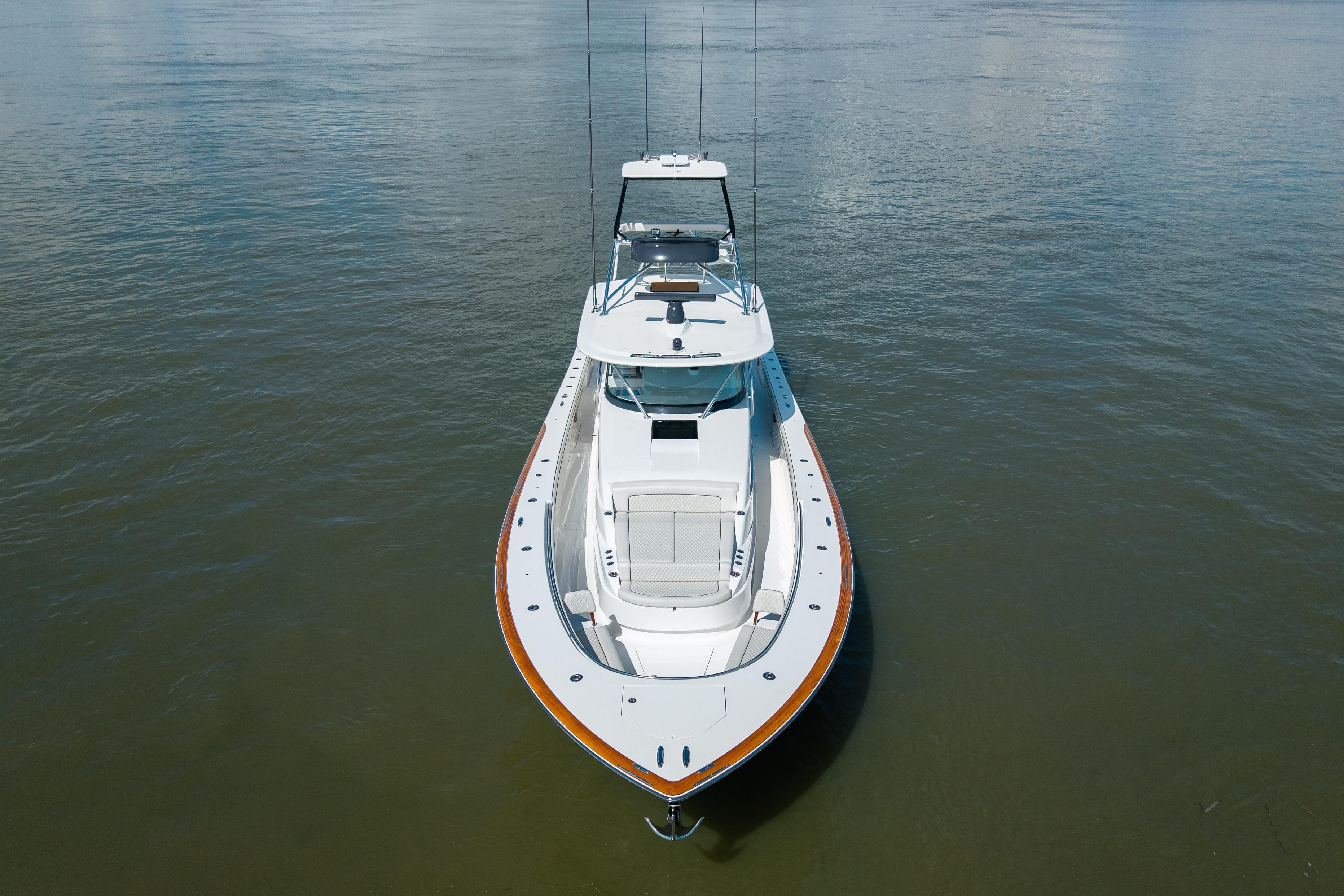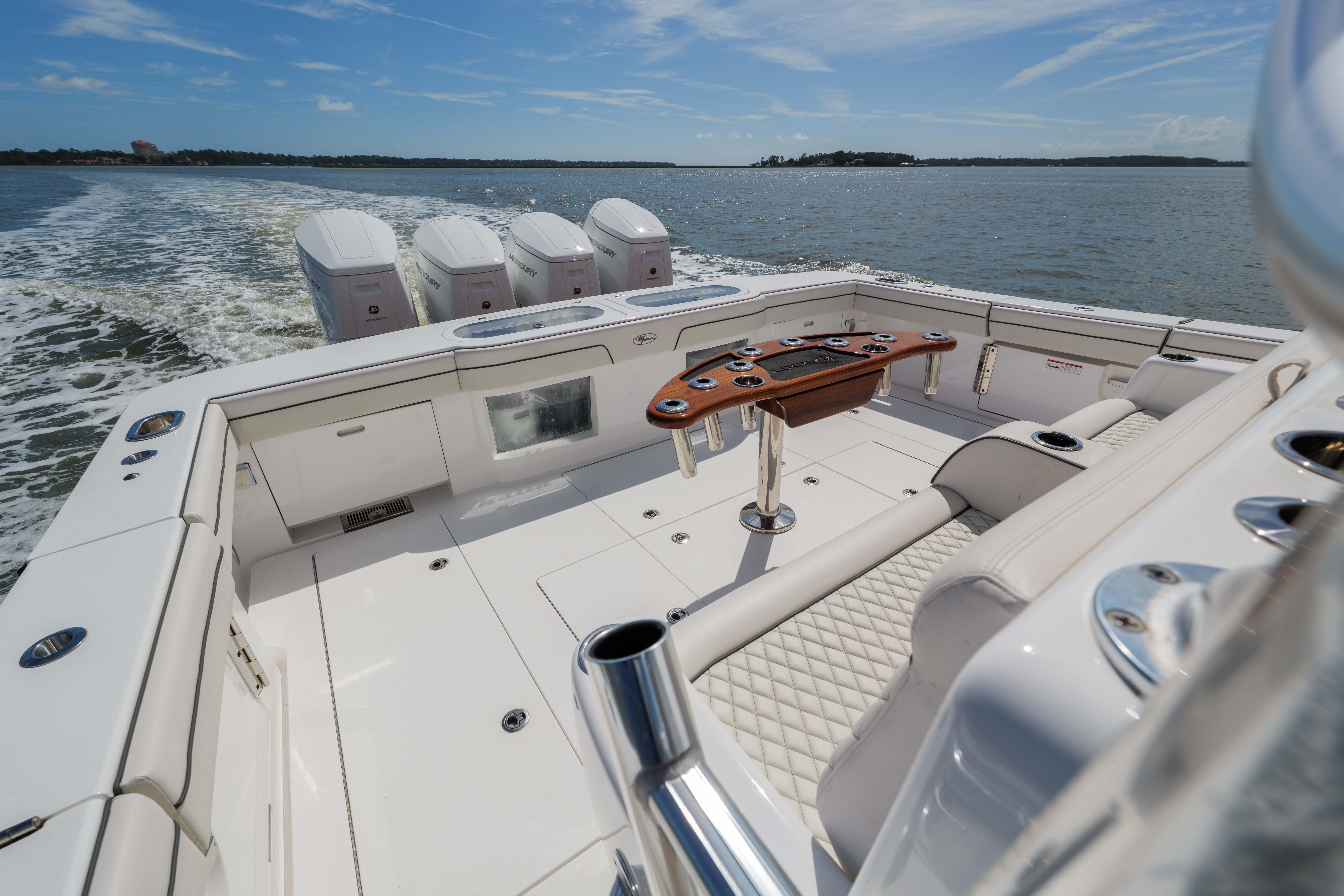 - Quad White V12 600 HP Mercury engines, with custom shark grey accent paint