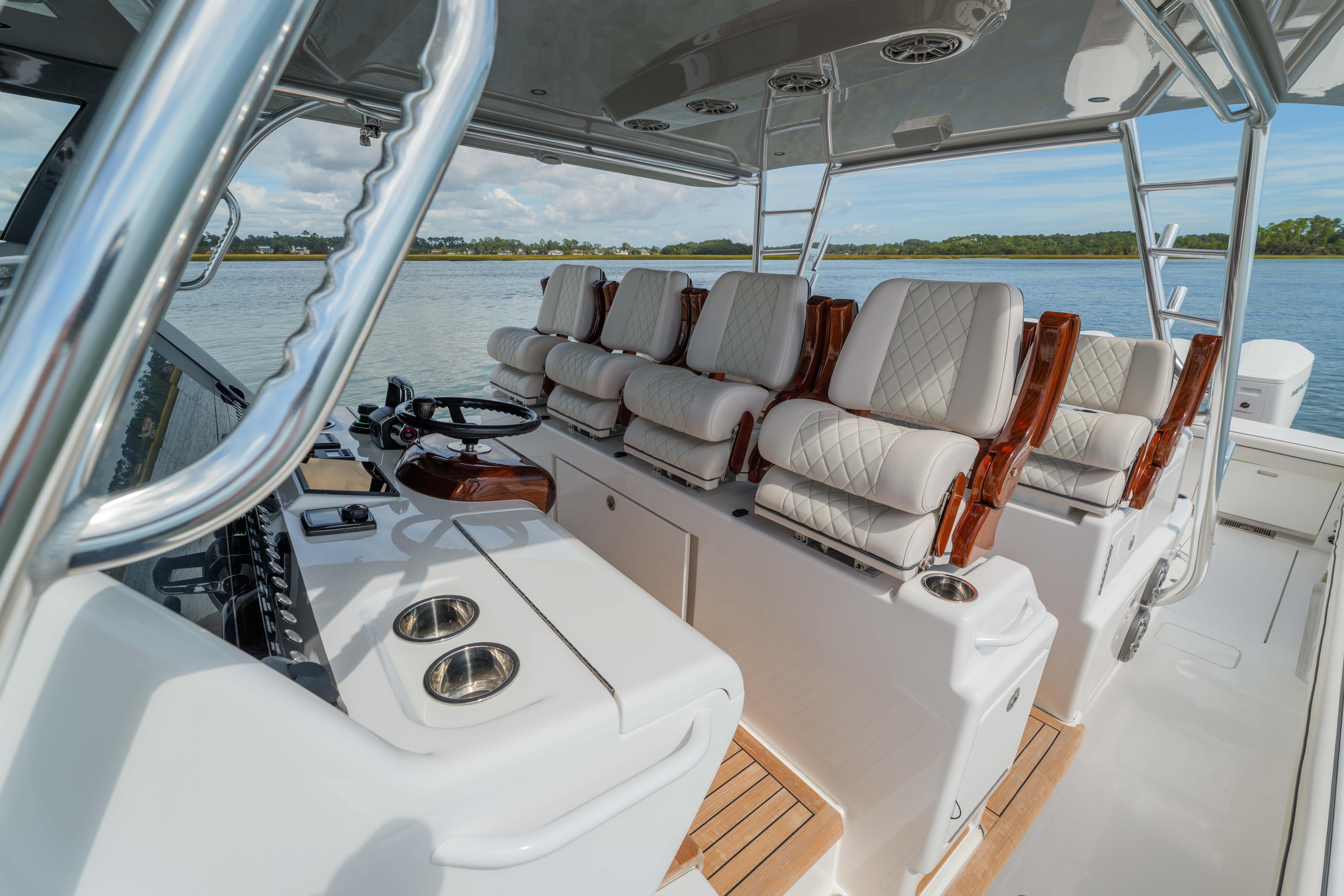 - (4) Release Marine 1st row 19” seats w/ 8 arm rests, electric slides and flip-up boosters